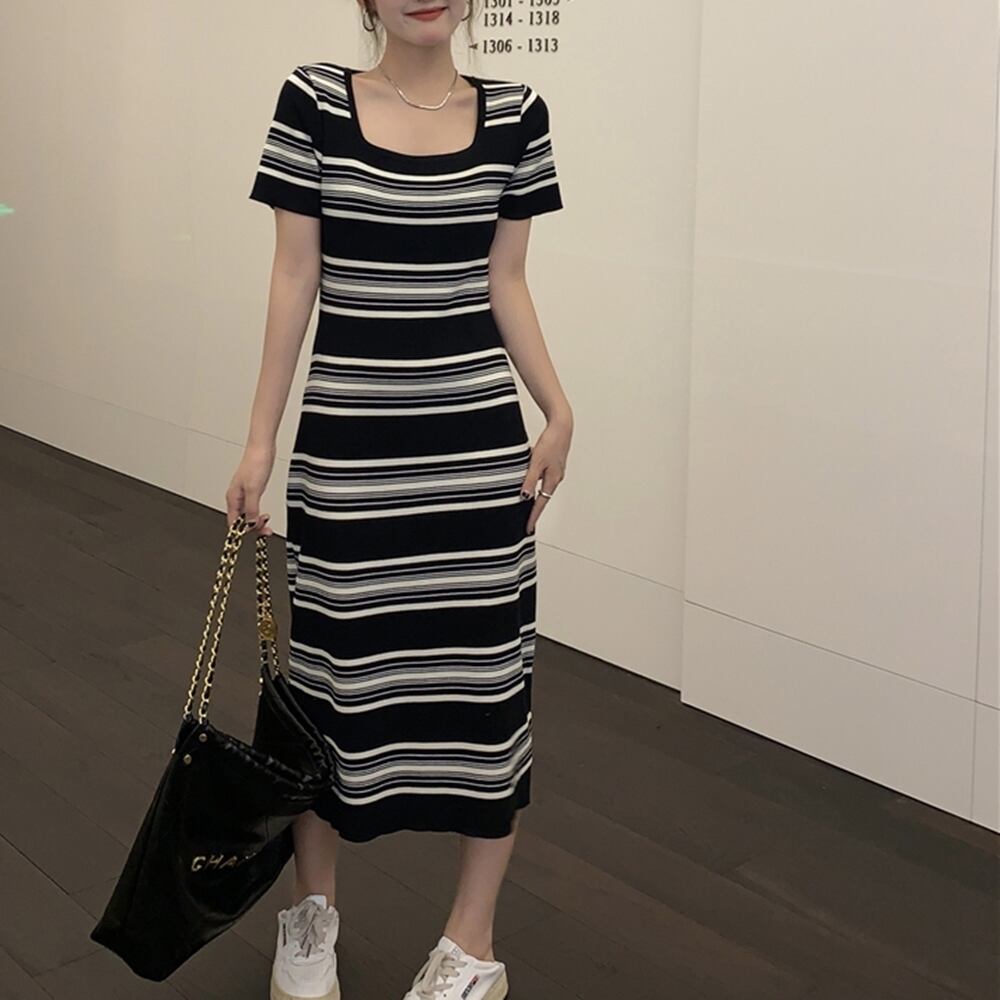 【 送料無料 】 ストライプ ニット 半袖 ワンピース 春 夏 2色 レディース 大きいサイズの店 大きいサイズ 安い 海外 店舗 通販 4xl おしゃれ きれいめ ジーンズ 重ね着 フリーク コーデ コレボ 生地 ロング 大柄 可愛い かわいい 10l 9l 8l 7l 6l 5l 4l 3l M1753