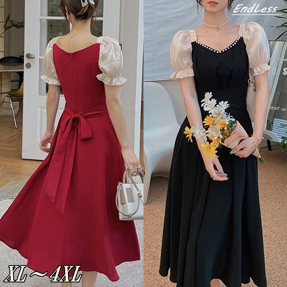 【 送料無料 】 太めの プラササイズ 半袖 ミディ丈 ドレス 春 夏 ブラック レッド レディース 大きいサイズの店 大きいサイズ 安い 海外 店舗 通販 4xl おしゃれ きれいめ 重ね着 フリーク コーデ コレボ 生地 ロング 大柄 可愛い かわいい 10l 9l 8l 7l 6l 5l 4l 3l M1753