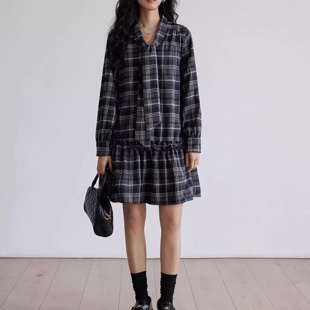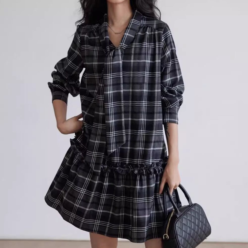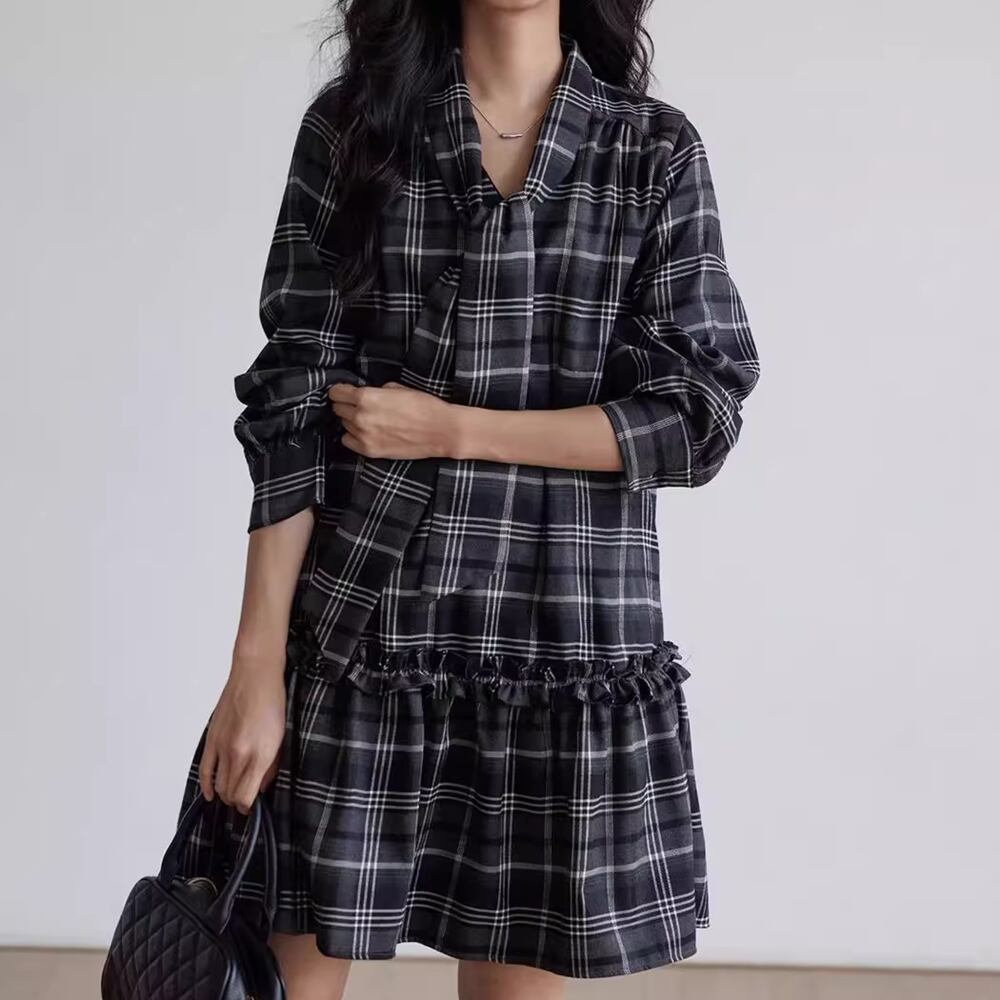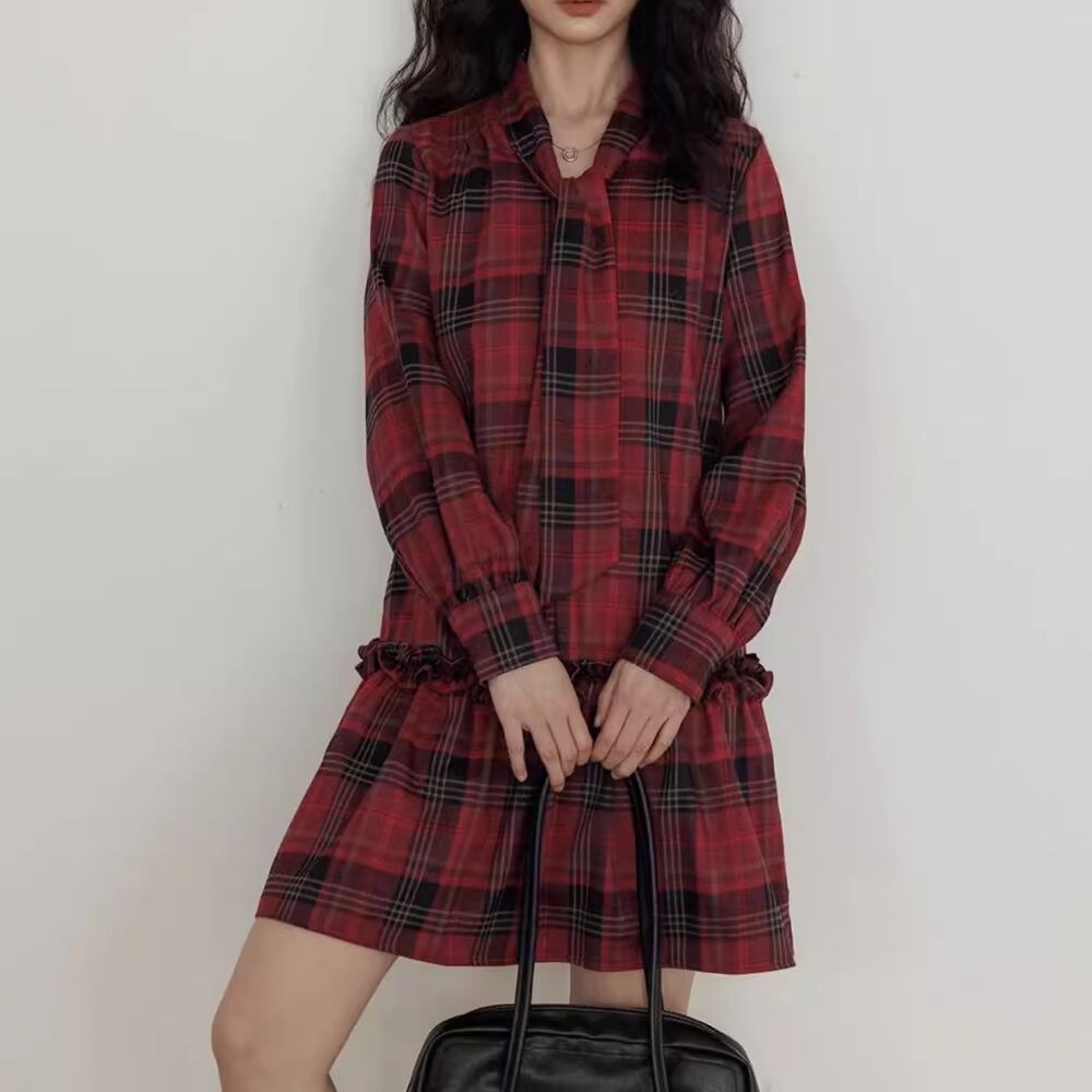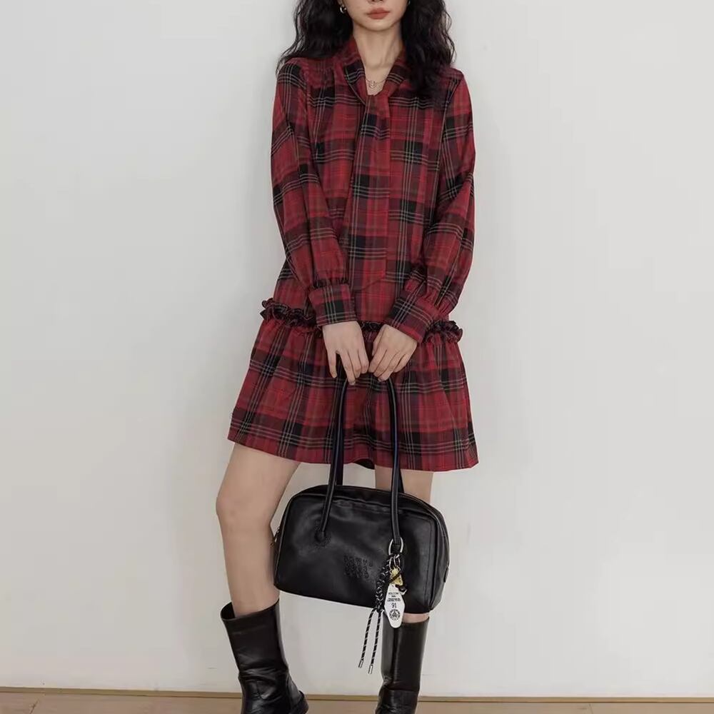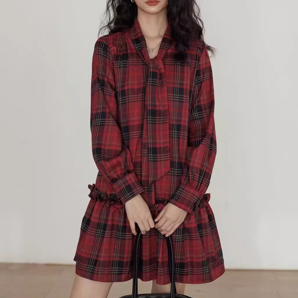 【 送料無料 】 大きめサイズ Vネック チェック柄 長袖 ワンピース ミドル丈 ブラック レッド 黒 春 夏 レディース 大きいサイズの店 大きいサイズ 安い 海外 店舗 通販 4xl 服 コーデ ベスト シャツ 重ね着 どっち おしゃれ 夏服 10l 9l 8l 7l 6l 5l 4l 3l M1771