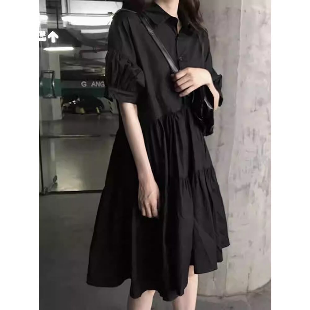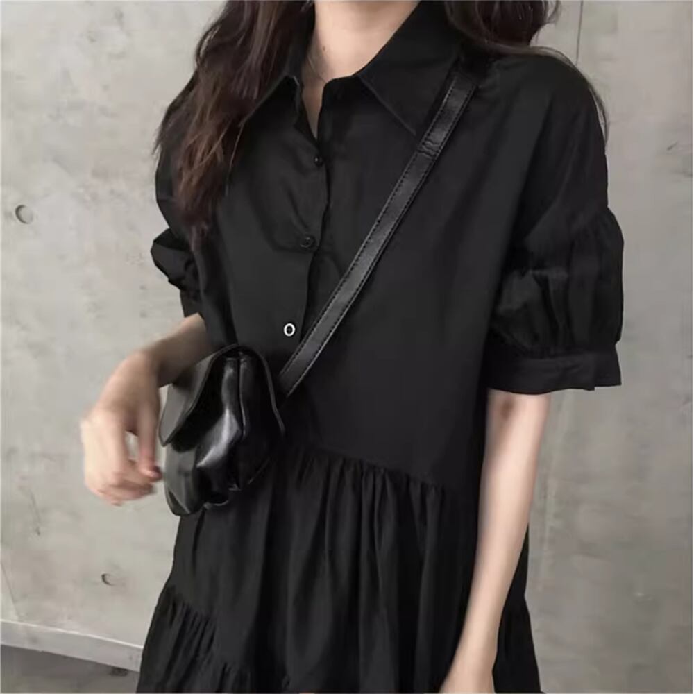 ♦ ゆったりウエストタイプ 半袖ブラックワンピースです。