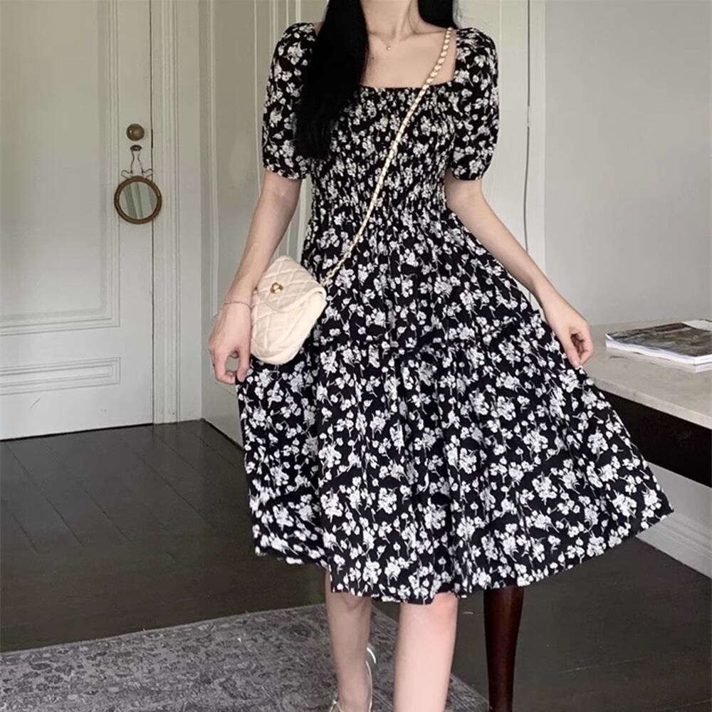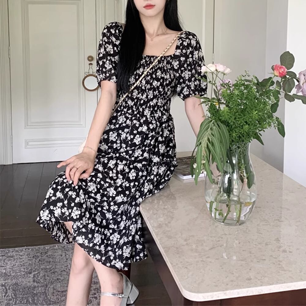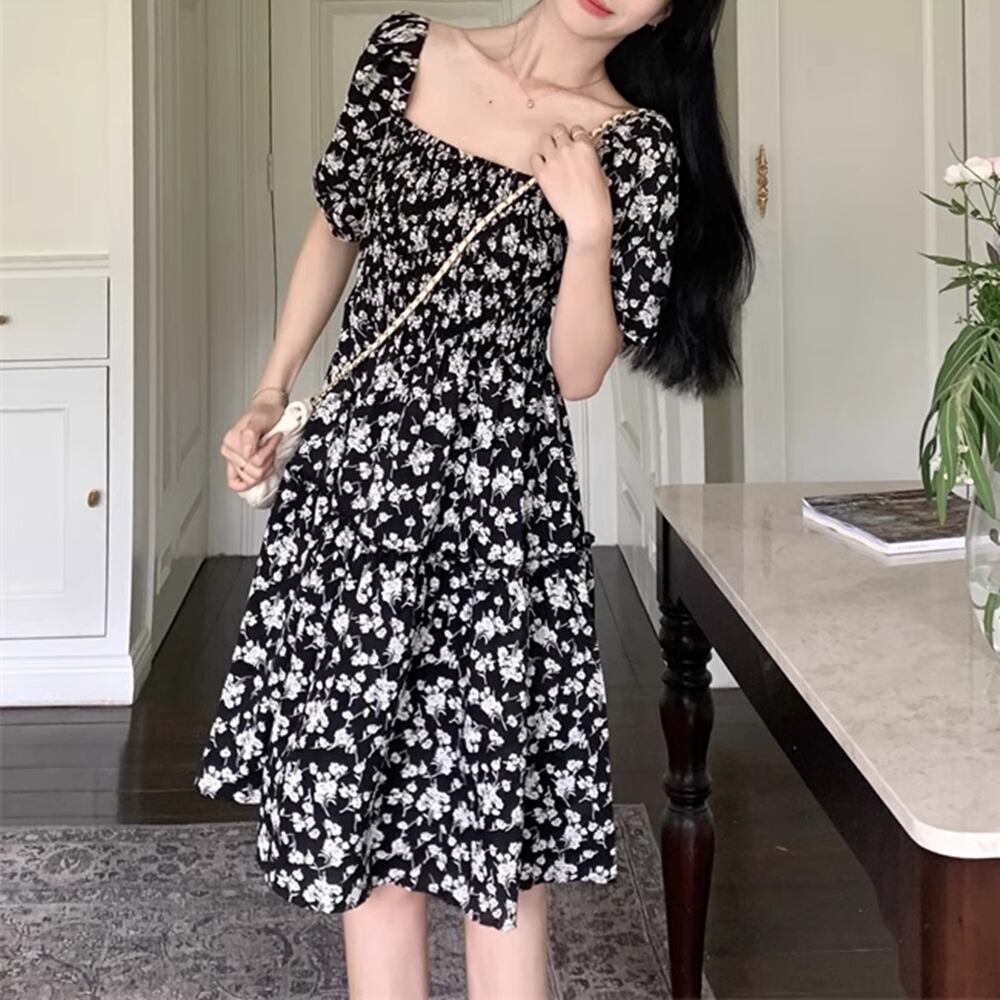 【 送料無料 】 半袖 パフスリーブ ウエストカバー レトロ 花柄 ワンピース ブラック 花柄 黒 夏 レディース 大きいサイズの店 大きいサイズ 安い 海外 店舗 通販 4xl 服 重ね着 きれいめ 可愛い リゾート おしゃれ セクシー 10l 9l 8l 7l 6l 5l 4l 3l M1785