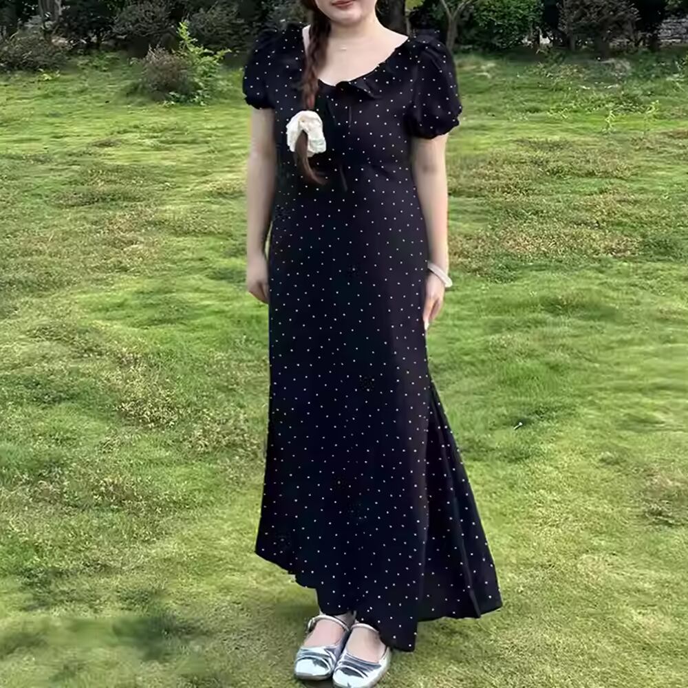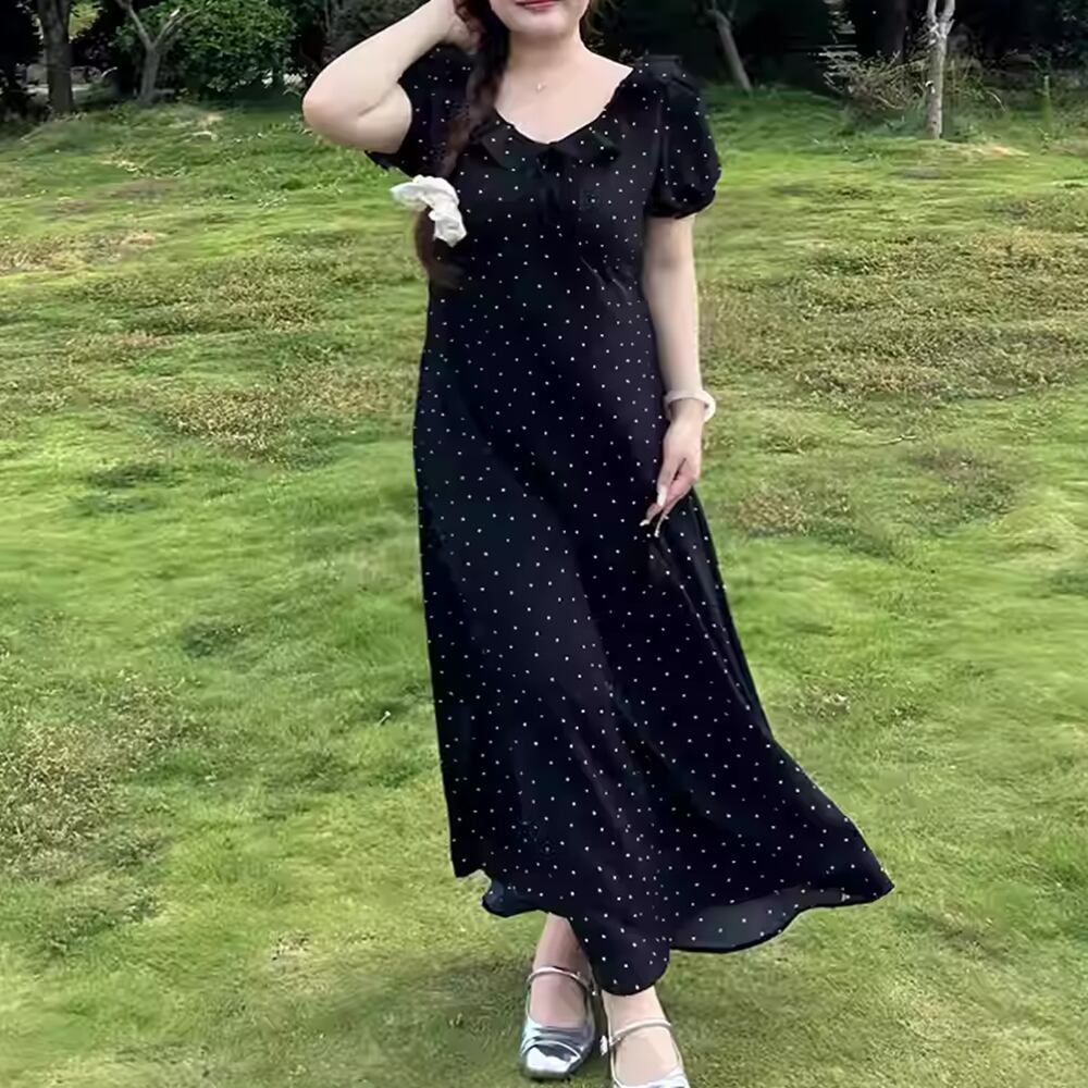 【 送料無料 】 特大サイズ 半袖 水玉 ドット柄 フリル Vネック ロング スカート 細見え ワンピース ブラック 黒 夏 夏服 レディース 大きいサイズの店 大きいサイズ 安い 海外 店舗 通販 4xl 服 重ね着 きれいめ 可愛い リゾート おしゃれ セクシー 10l 9l 8l 7l 6l 5l 4l 3l M1791