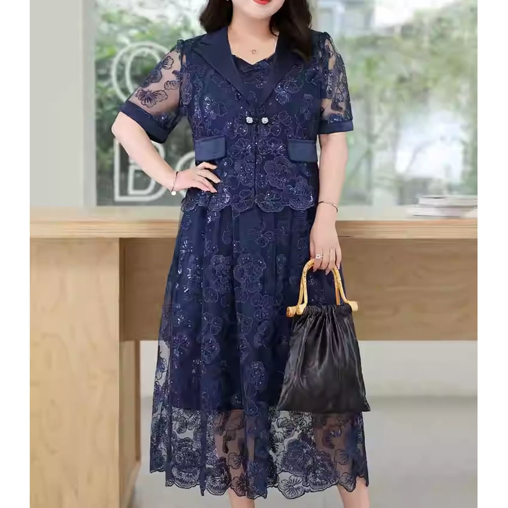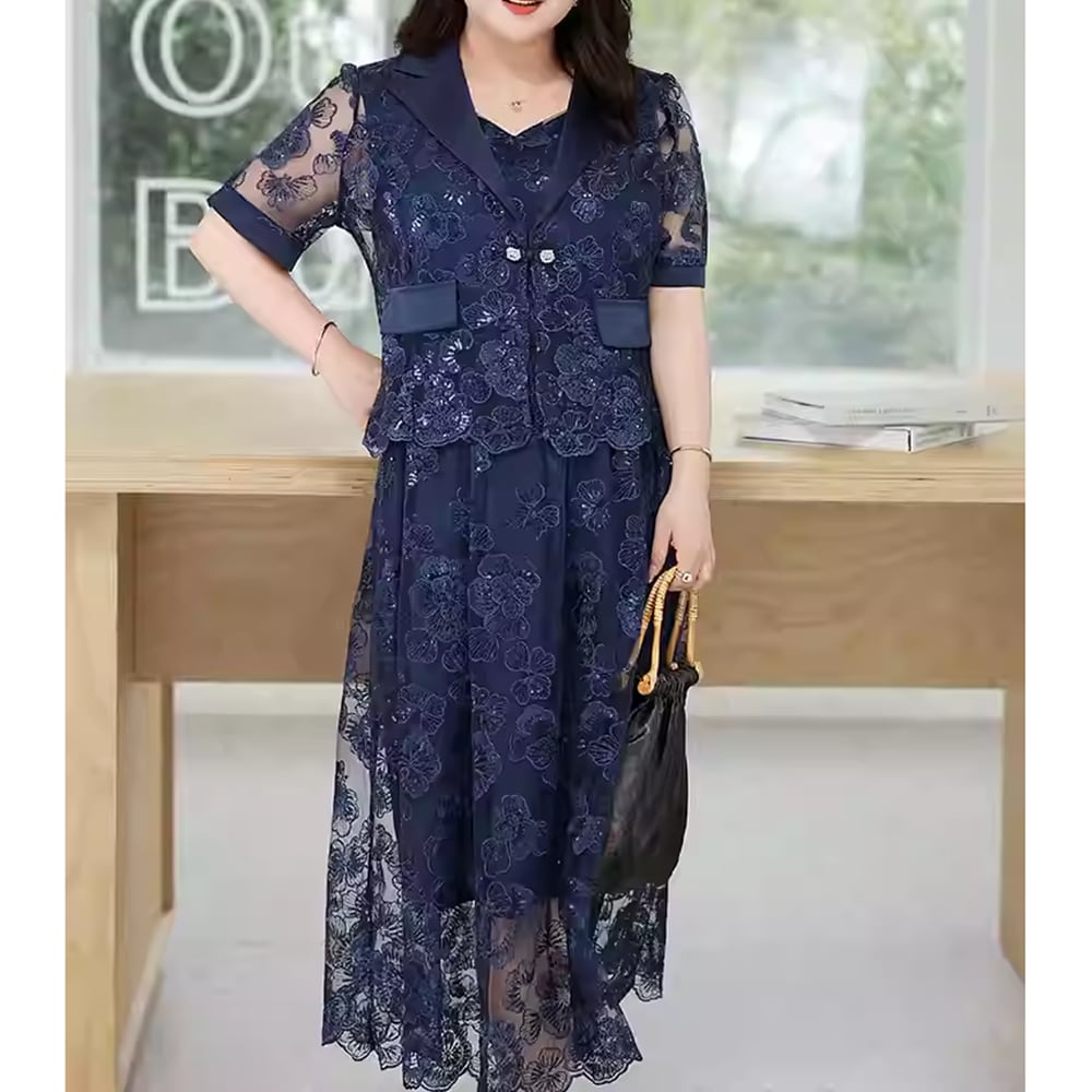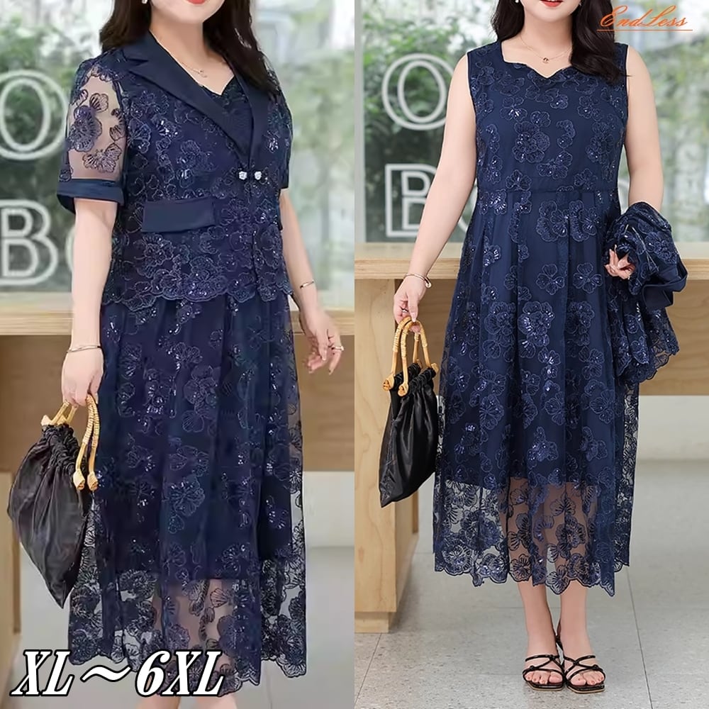 【 送料無料 】 プラスサイズ 2ピースセット 半袖 トップス + ノースリーブ ロング ワンピース 夏 レース レディース 大きいサイズの店 大きいサイズ 安い 海外 店舗 通販 4xl 服 セクシー お呼ばれ ロング シンプル かっこいい 10l 9l 8l 7l 6l 5l 4l 3l M1805
