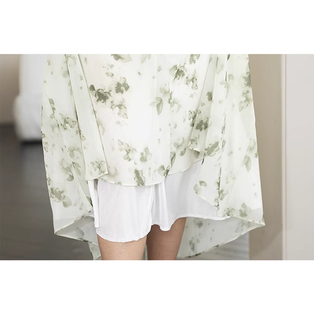 ◆ 花柄 お洒落なフリル袖 ゆったりハイウエスト カジュアルなドレスです。
