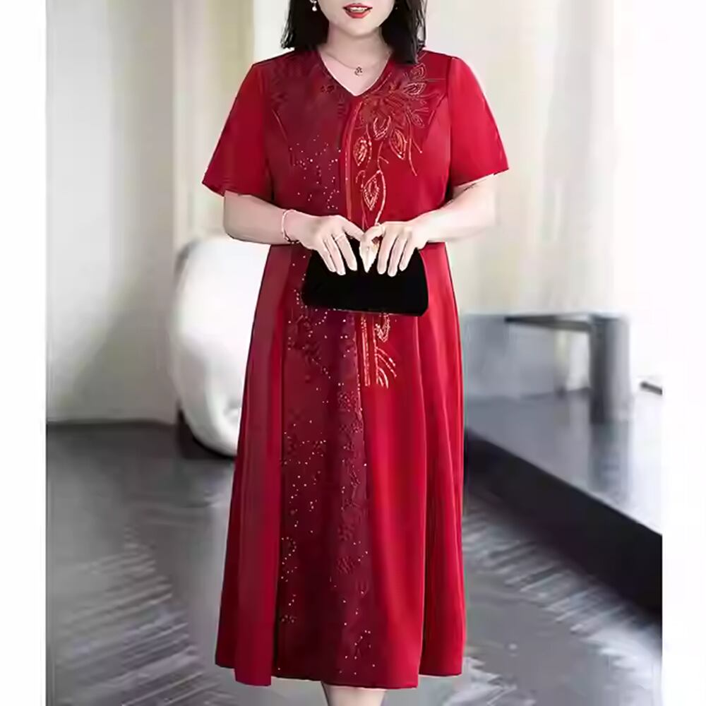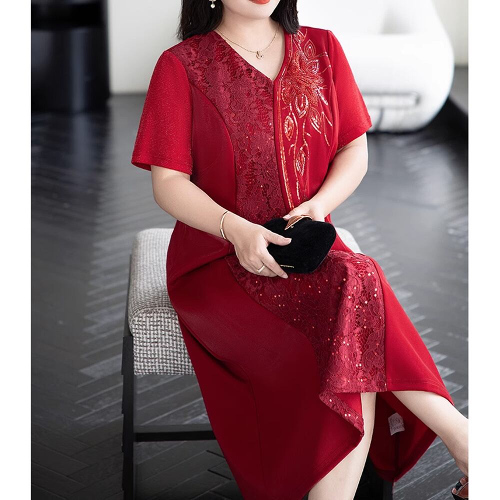 【 送料無料 】 プラスサイズ 半袖 レース ミディアム丈 サマー ワンピース パーティー ドレス 夏 レッド 赤 レディース 大きいサイズの店 大きいサイズ 安い 海外 店舗 通販 4xl 服 ロング 結婚式 演奏会 お呼ばれ 同窓会 カジュアル おしゃれ きれいめ 10l 9l 8l 7l 6l 5l 4l 3l M1808