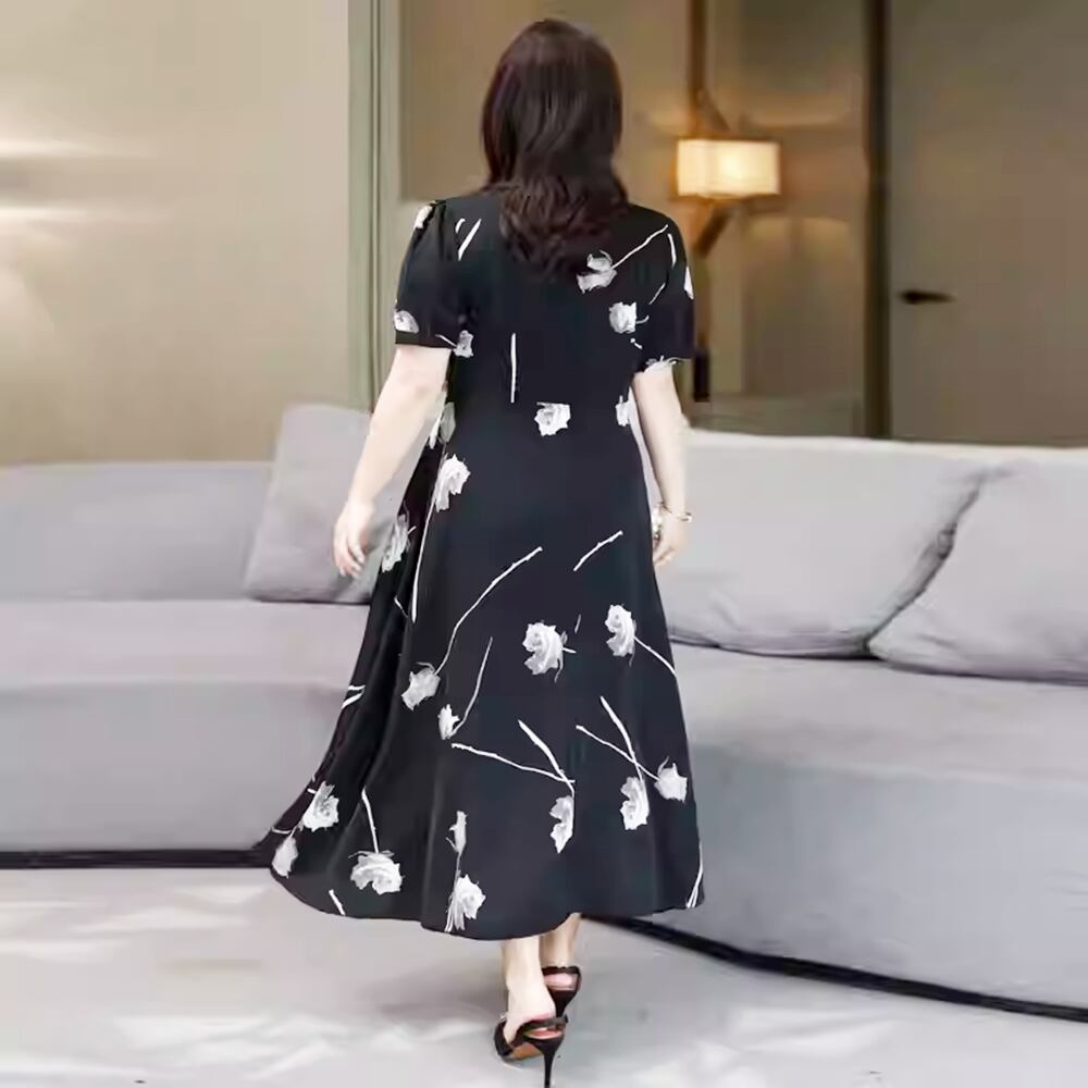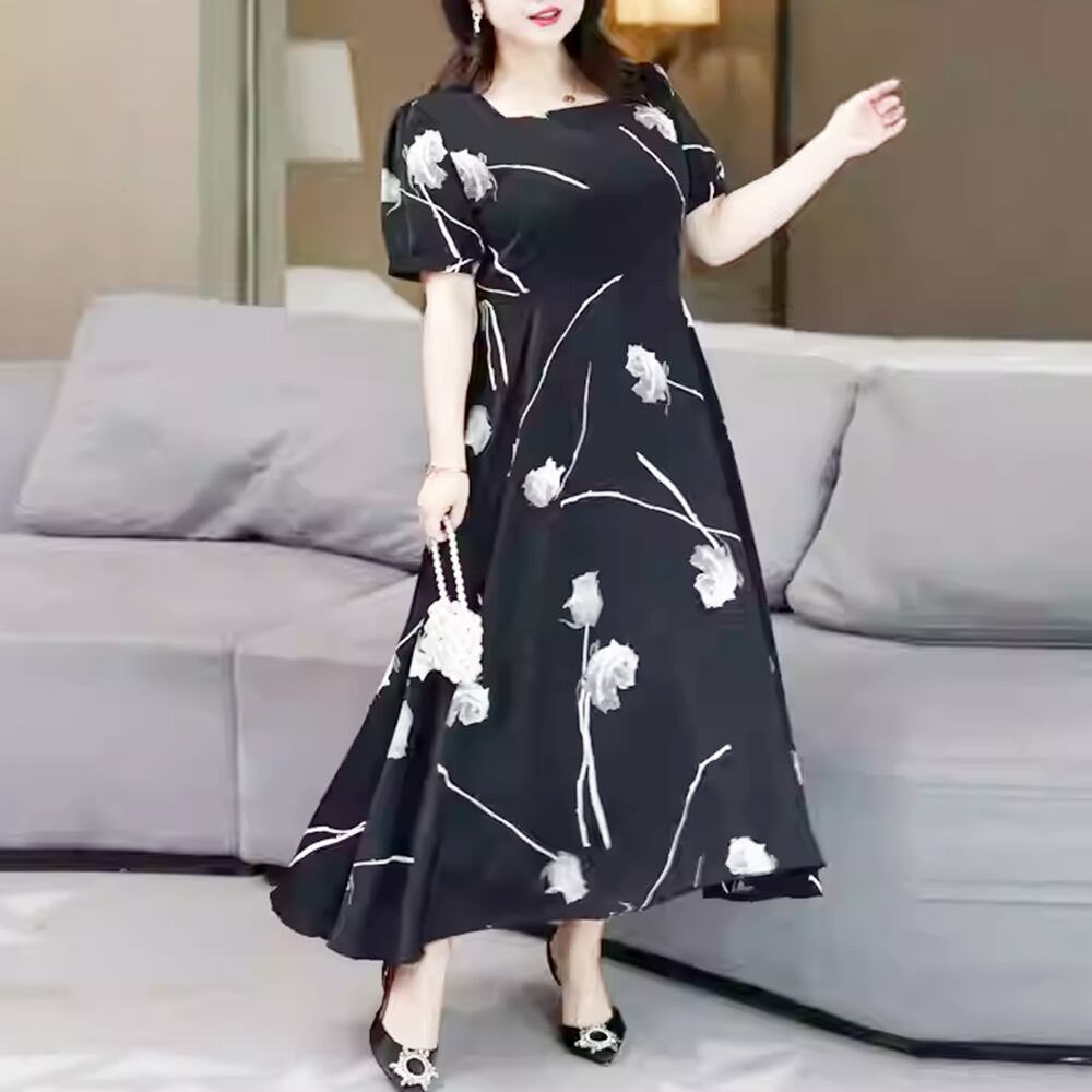 【 送料無料 】 花柄 半袖 細見え ワンピース ドレス ブラック カジュアル 黒 ワンピース レディース 大きいサイズの店 大きいサイズ 安い 服 おしゃれ きれいめ カジュアル10l 9l 8l 7l 6l 5l 4l 3l M1810
