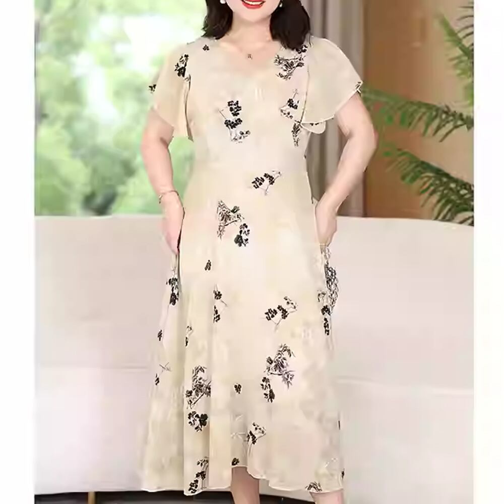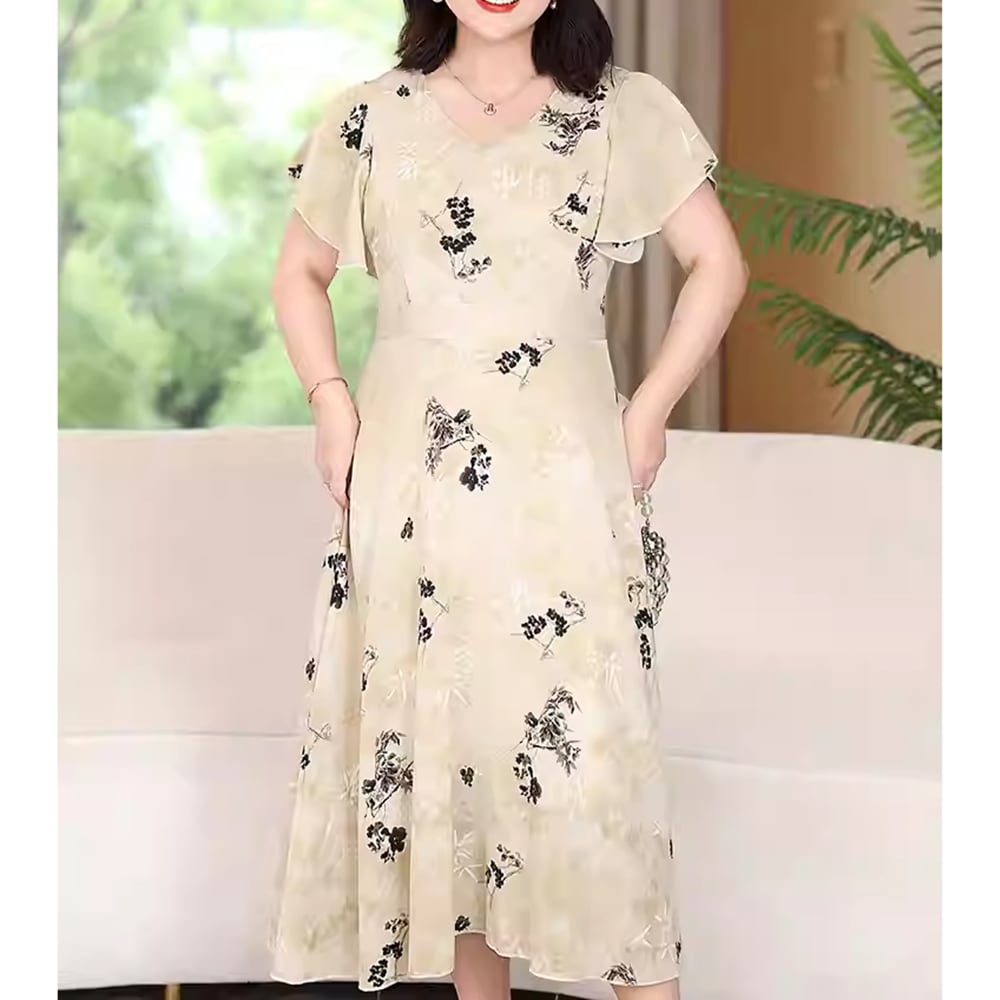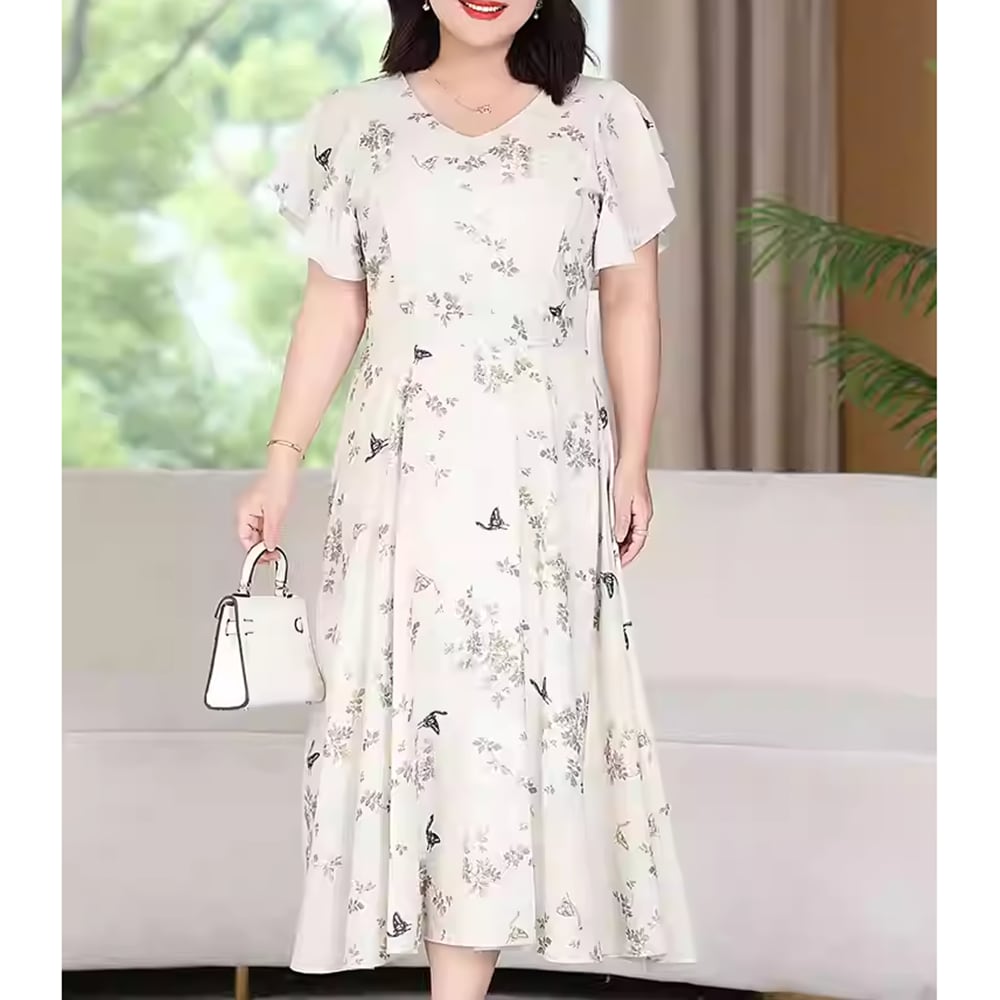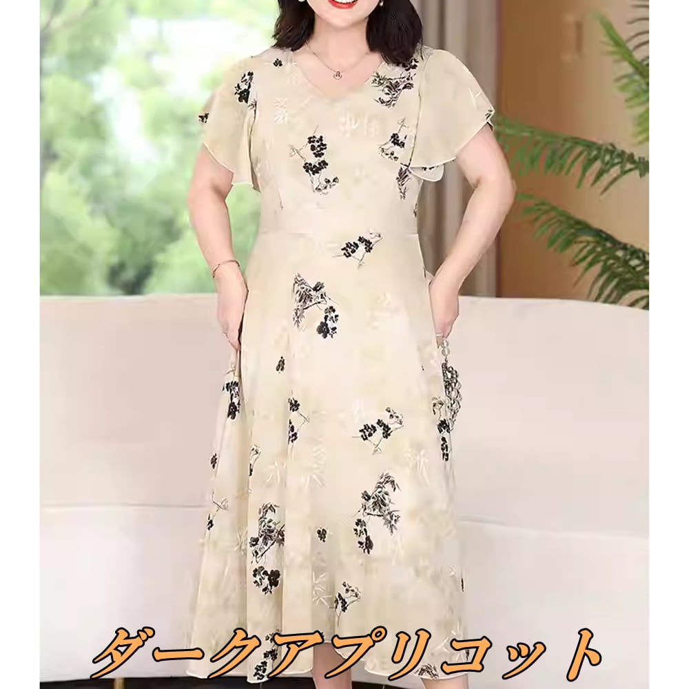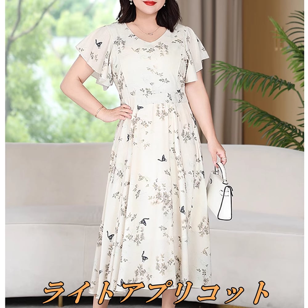 【 送料無料 】 花柄 半袖 フリル Vネック 体型カバー カジュアル ドレス 夏 レディース 大きいサイズの店 大きいサイズ 安い 服 重ね着 きれいめ リゾート ロング 襟 10l 9l 8l 7l 6l 5l 4l 3l M1813