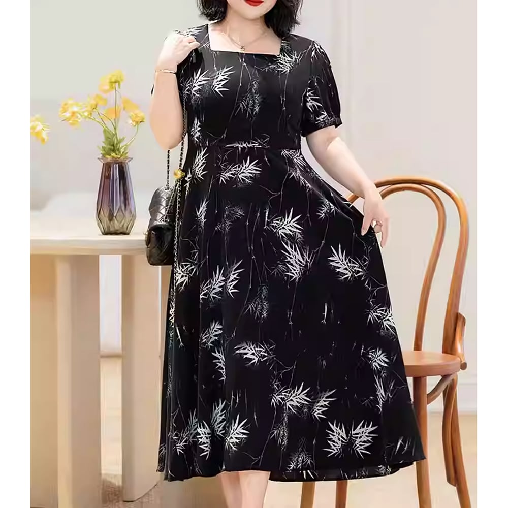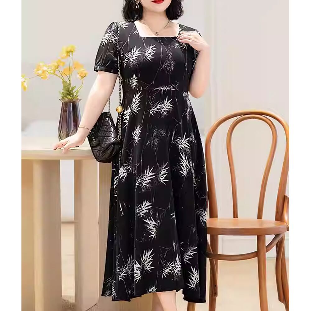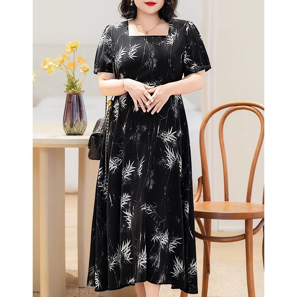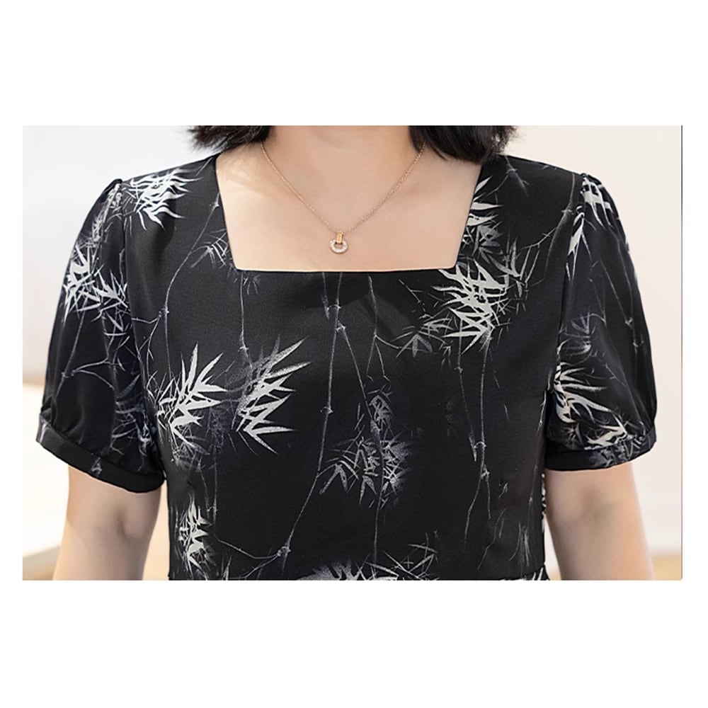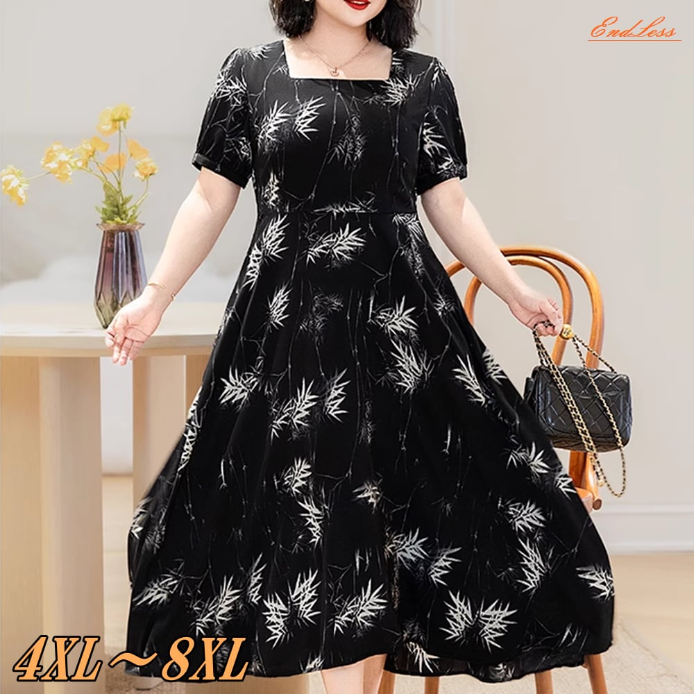 【 送料無料 】 半袖 スクエアネック ハイウエスト 体型カバー カジュアル ブラック ドレス 夏 黒 レディース 大きいサイズの店 大きいサイズ 安い 服 重ね着 きれいめ リゾート ロング 襟 10l 9l 8l 7l 6l 5l 4l 3l M1814