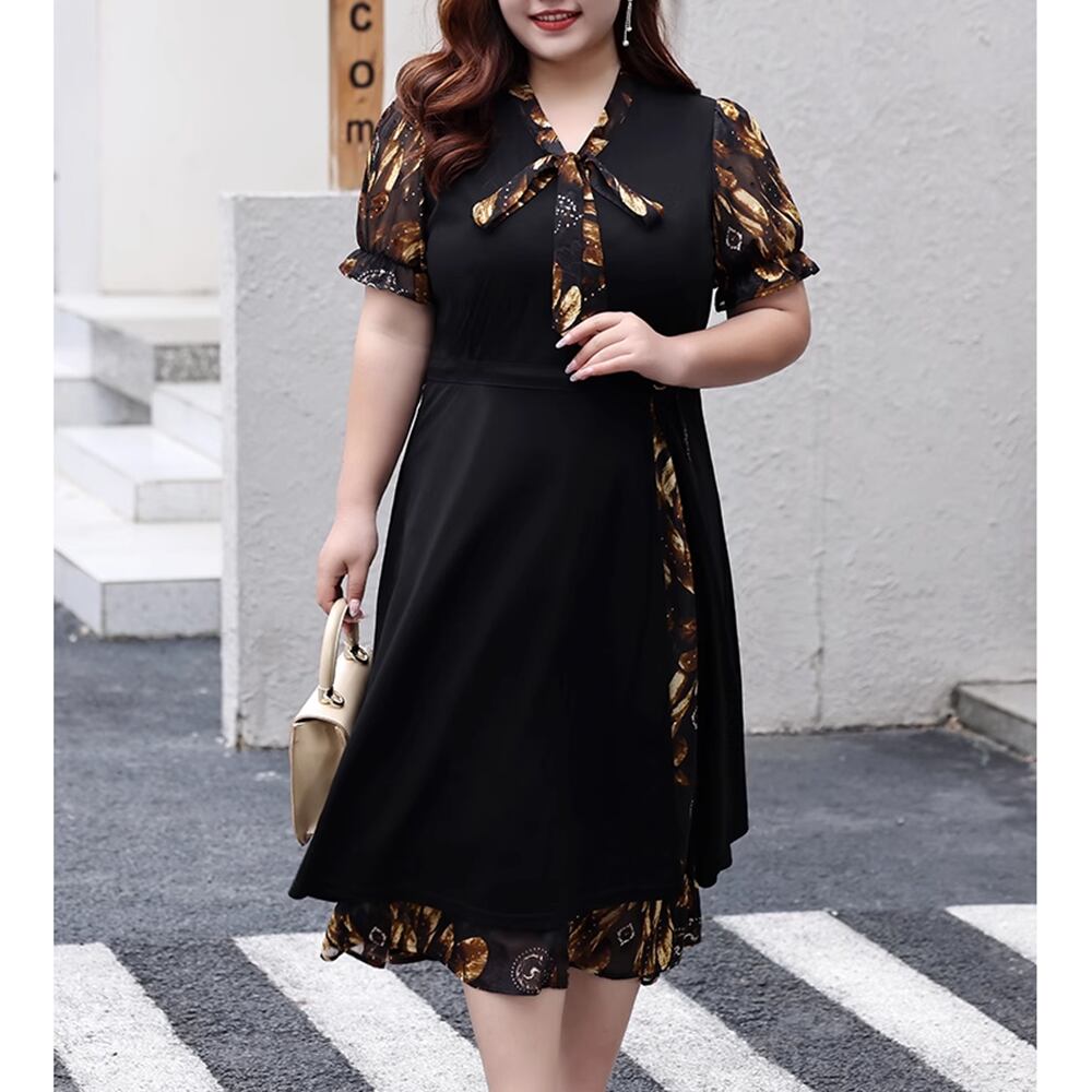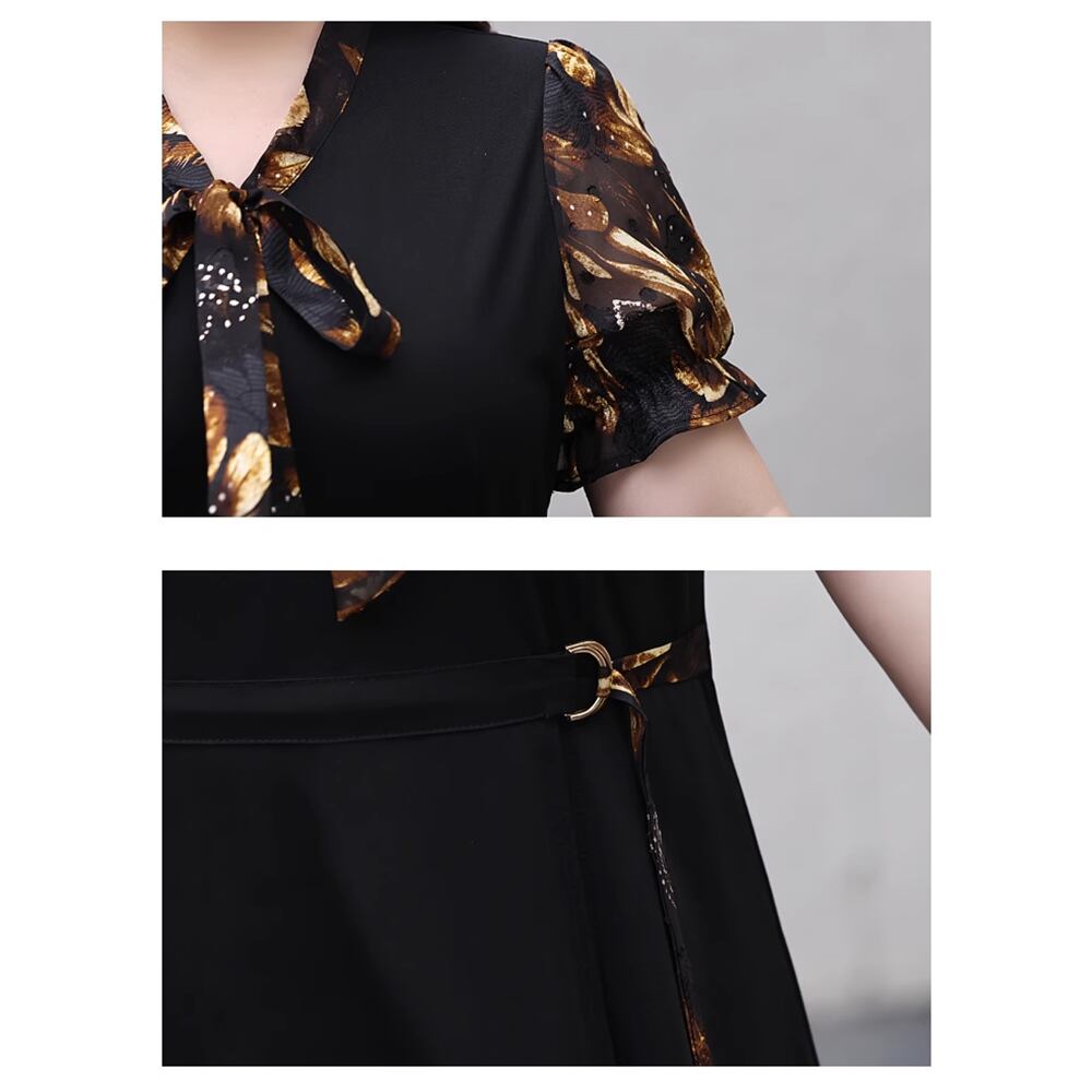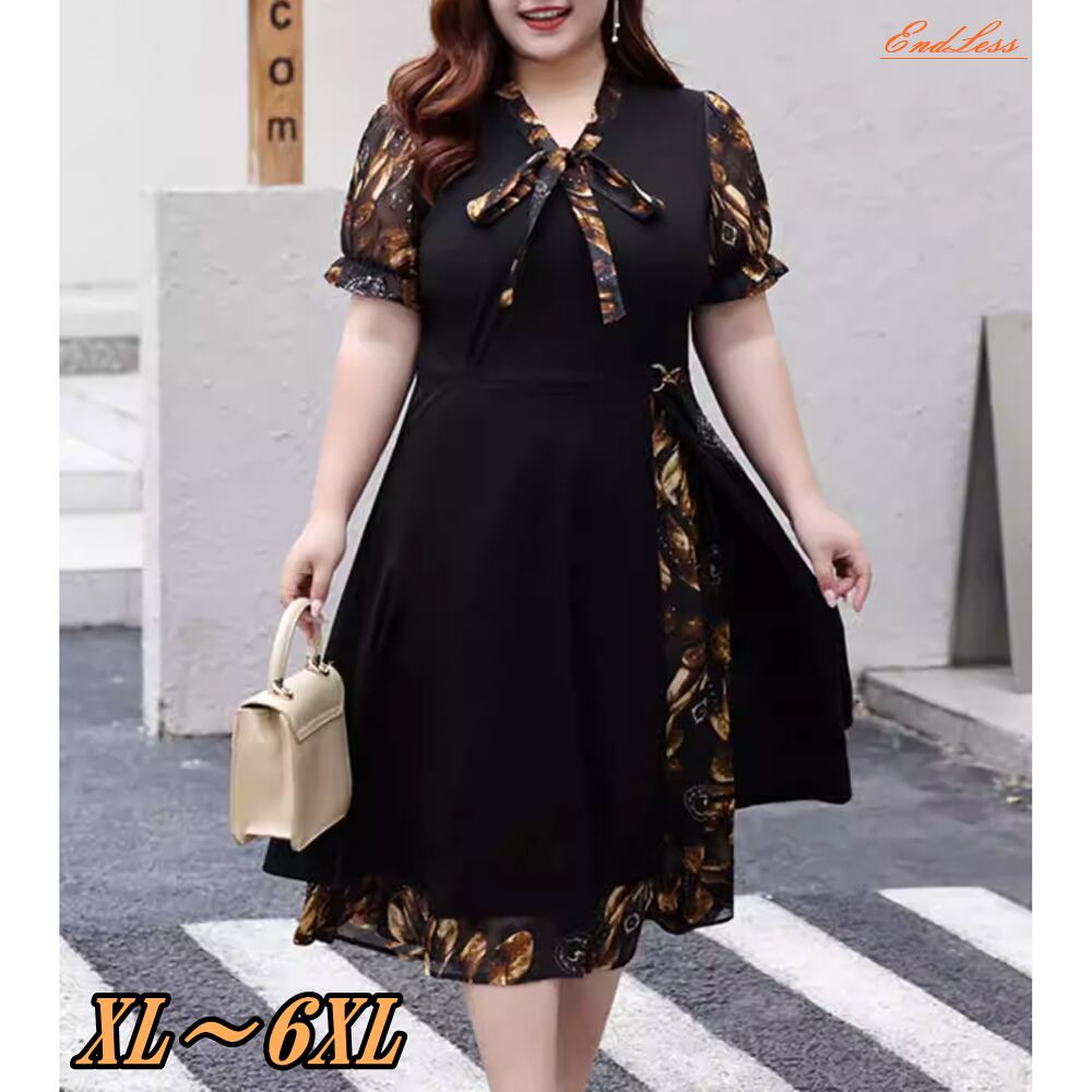 【 送料無料 】 花柄 半袖 ゆったり Vネック リボン カジュアル ドレス 夏 黒 ブラックレディース 大きいサイズの店 大きいサイズ 安い 海外 店舗 通販 4xl 服 フォーマル ロング シンプル インナー 演奏会 セットアップ 10l 9l 8l 7l 6l 5l 4l 3l M1817