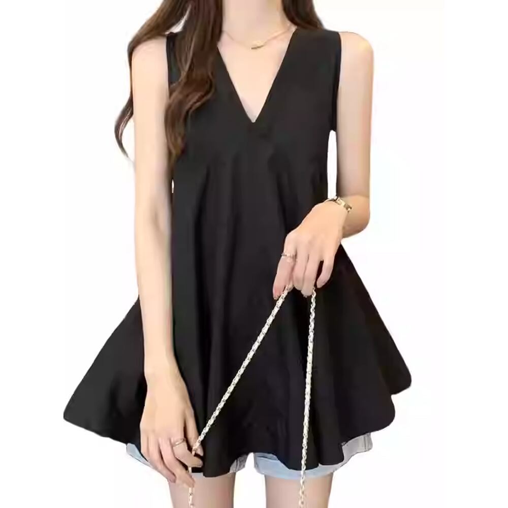 【 送料無料 】 Vネック ゆったり ウエスト ノースリーブ ミドル丈 シャツ トップス 黒 夏 レディース 大きいサイズの店 大きいサイズ 安い 海外 店舗 通販 4xl 服 おしゃれ かわいい きれいめ セクシー 10l 9l 8l 7l 6l 5l 4l 3l M1824