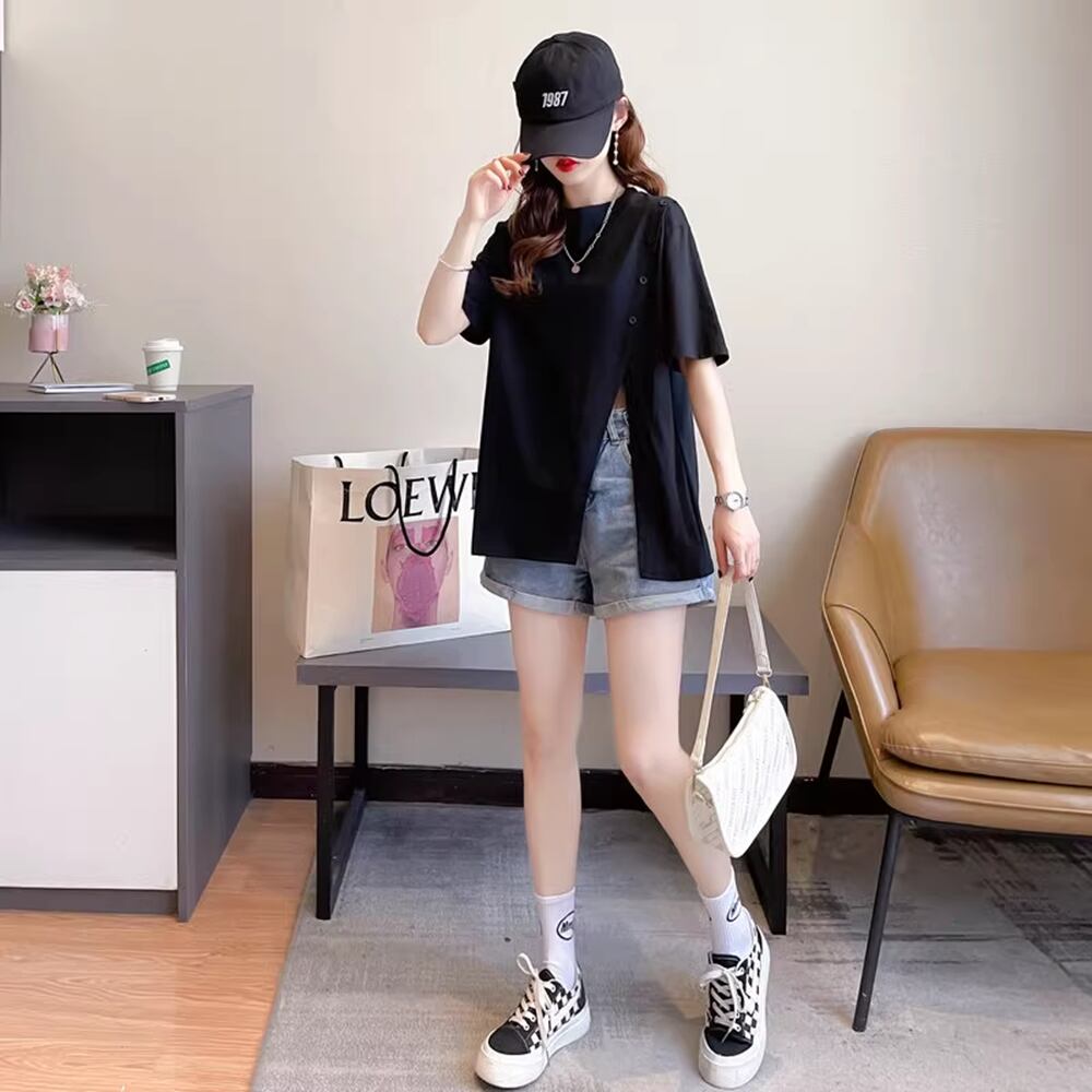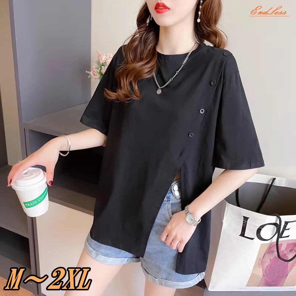 【 送料無料 】 ゆったり プラスサイズ サイドスリット ロング シャツ トップス 黒 夏 レディース 大きいサイズの店 大きいサイズ 安い 海外 店舗 通販 4xl 服 半袖 コーデ ボタン おしゃれ tシャツ セクシー 10l 9l 8l 7l 6l 5l 4l 3l M1827