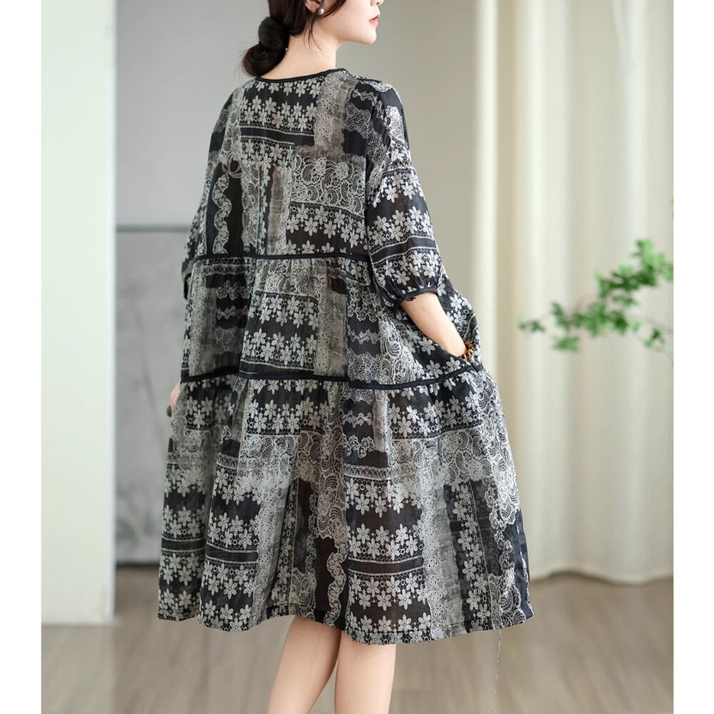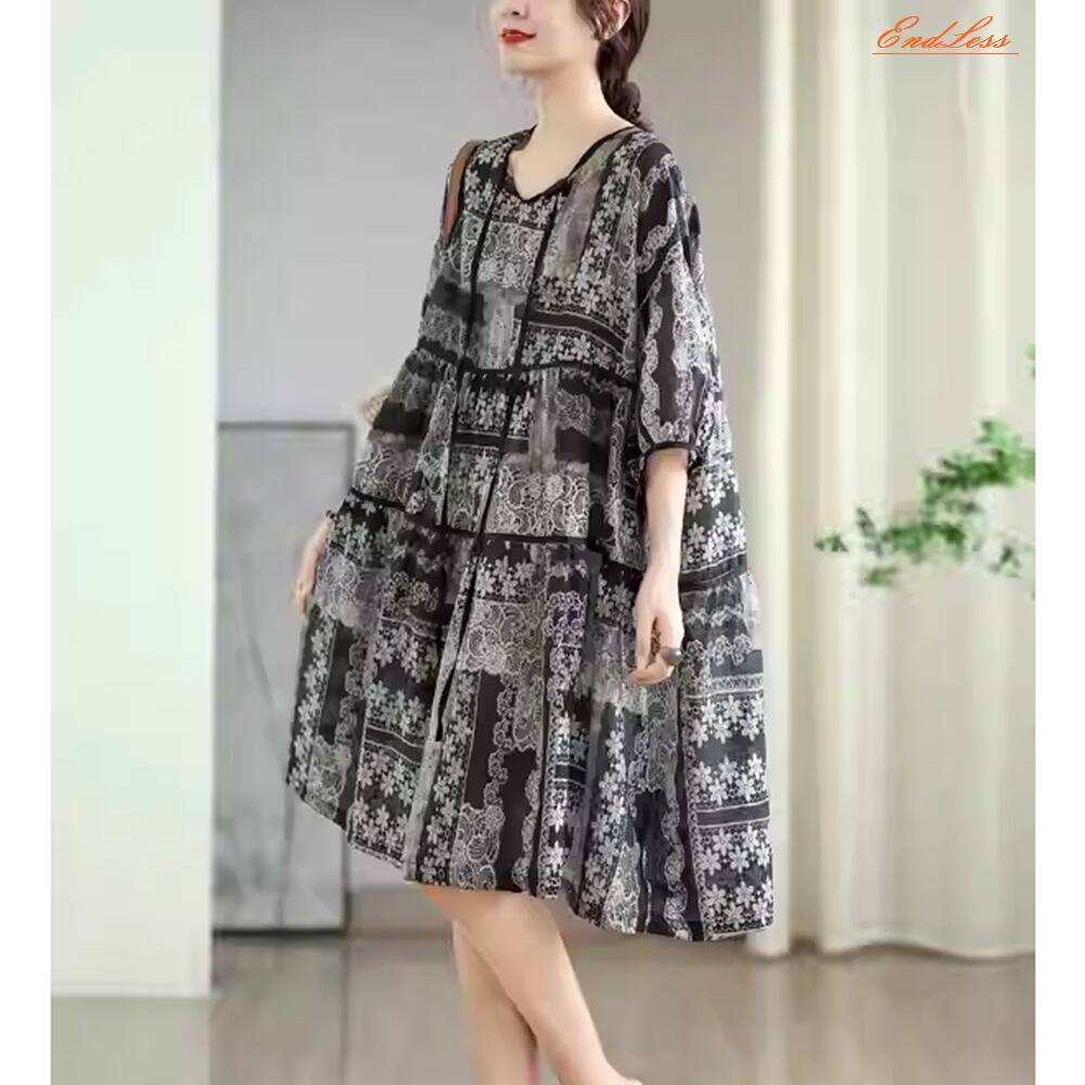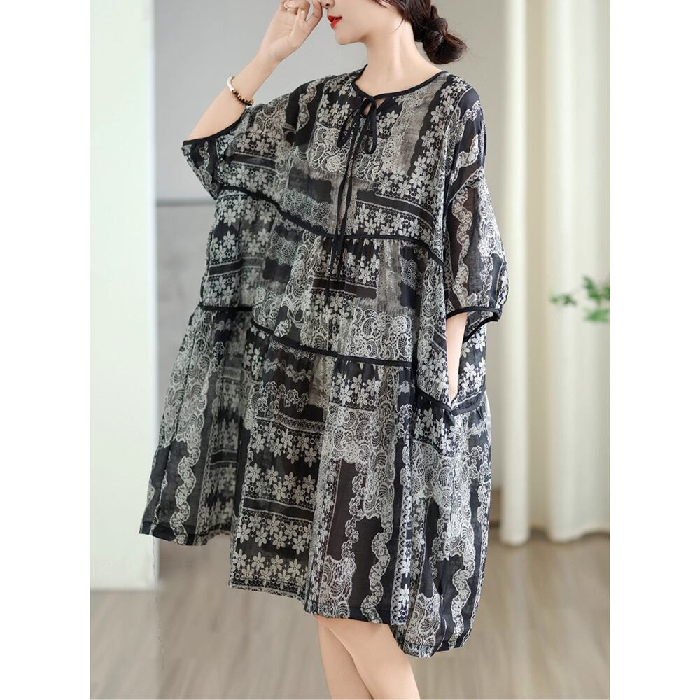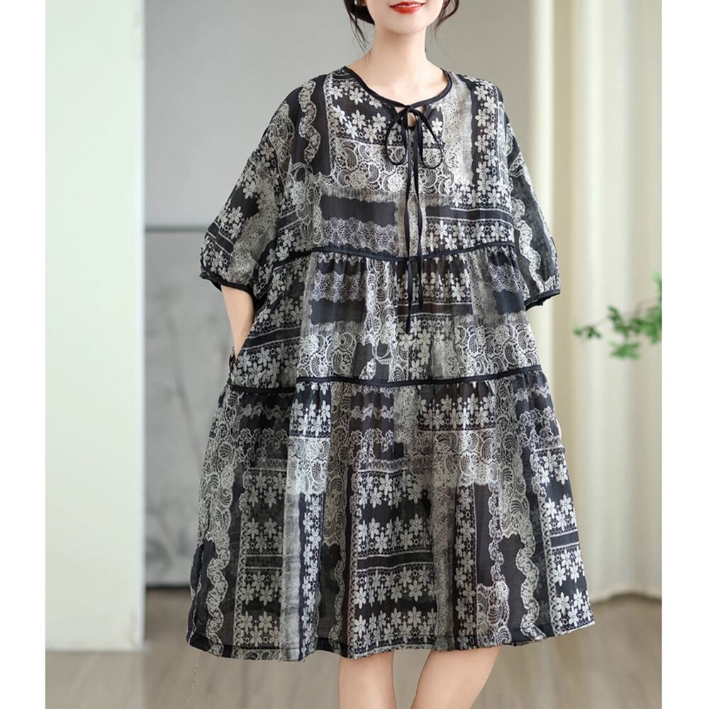 【 送料無料 】 ゆったりサイズ 半袖 ネックラインタイ ミディアム スカート ワンピース 夏 夏服 レディース 大きいサイズの店 大きいサ イズ 安い 服 重ね着 きれいめ リゾート ロング コーデ ママ 10l 9l 8l 7l 6l 5l 4l 3l M1849