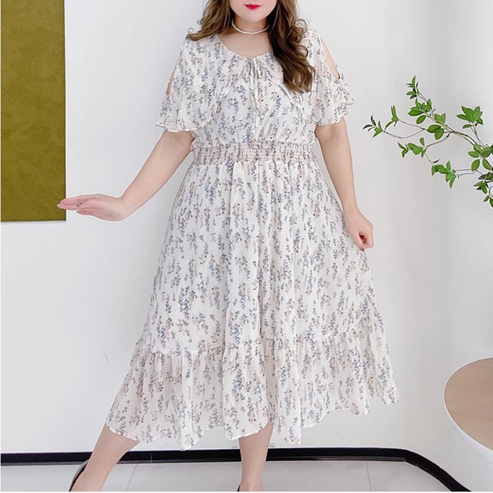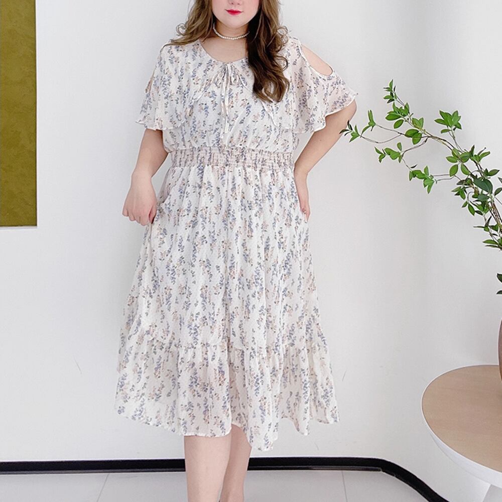 【 送料無料 】 プラスサイズ 花柄 半袖 オフショルダー ロングスカート フリル ドレス ワンピース 夏 夏服 レディース 大きいサイズの店 大きいサイズ 安い 服 重ね着 きれいめ リゾート ロング コーデ ママ 10l 9l 8l 7l 6l 5l 4l 3l M1850