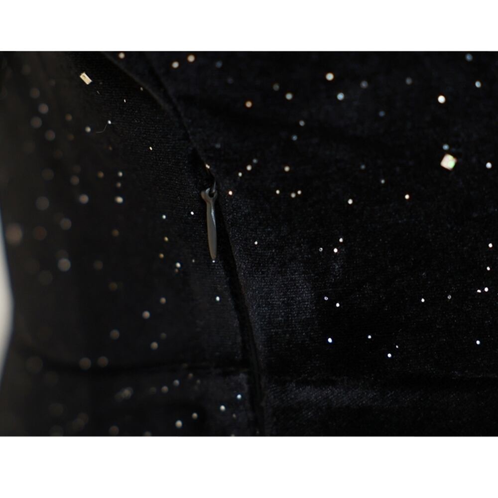 スクエアネック 長袖 ゴールドベルベットドレスです。