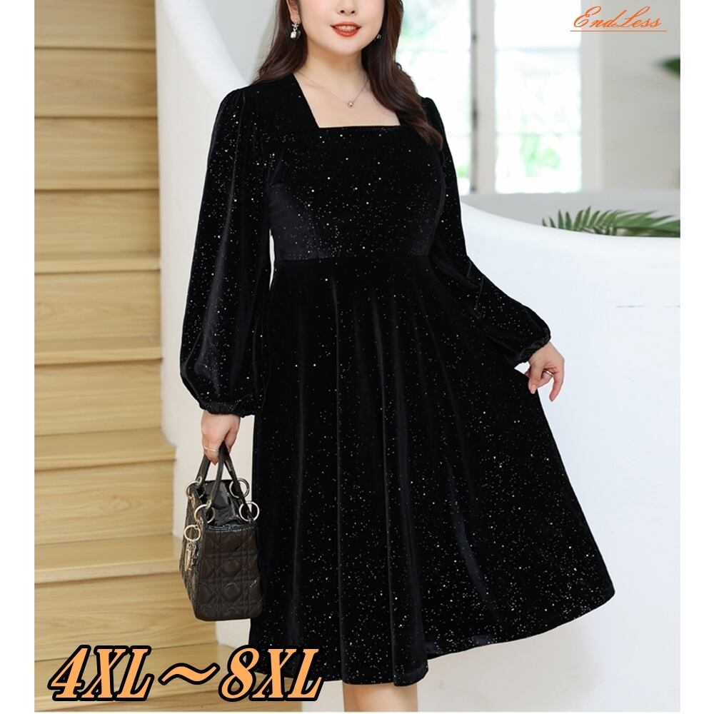 【 送料無料 】 プラスサイズ 長袖 ミディアムスカート ブラック ドレス ワンピース 秋 冬 冬服 レディース 大きいサイズの店 大きいサイズ 安い 服 重ね着 きれいめ リゾート ロング コーデ ママ 10l 9l 8l 7l 6l 5l 4l 3l M1860