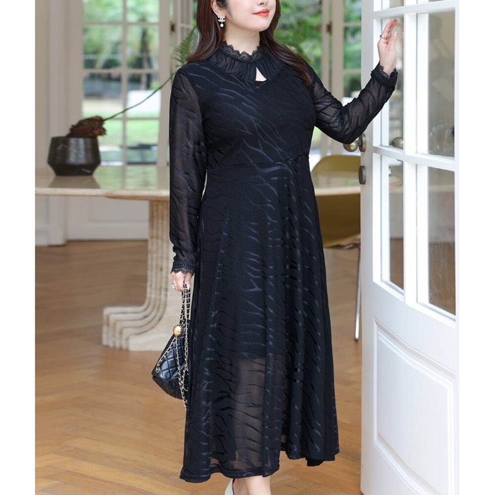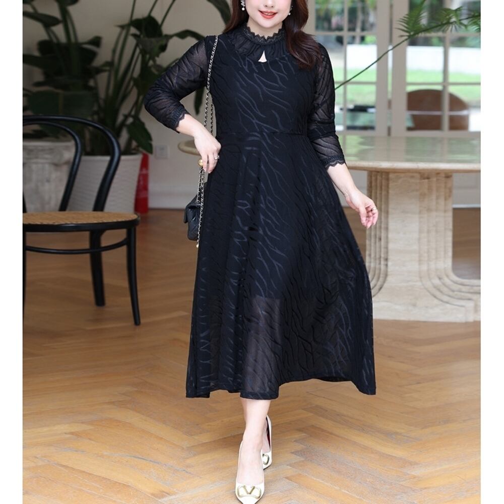 【 送料無料 】 特大サイズ プラス メッシュ 長袖 ゆったり ブラックカジュアル ドレス ワンピース ブラック 秋 冬 冬服 レディース 大きいサイズの店 大きいサイズ 安い 服 重ね着 きれいめ リゾート ロング コーデ ママ 10l 9l 8l 7l 6l 5l 4l 3l M1861