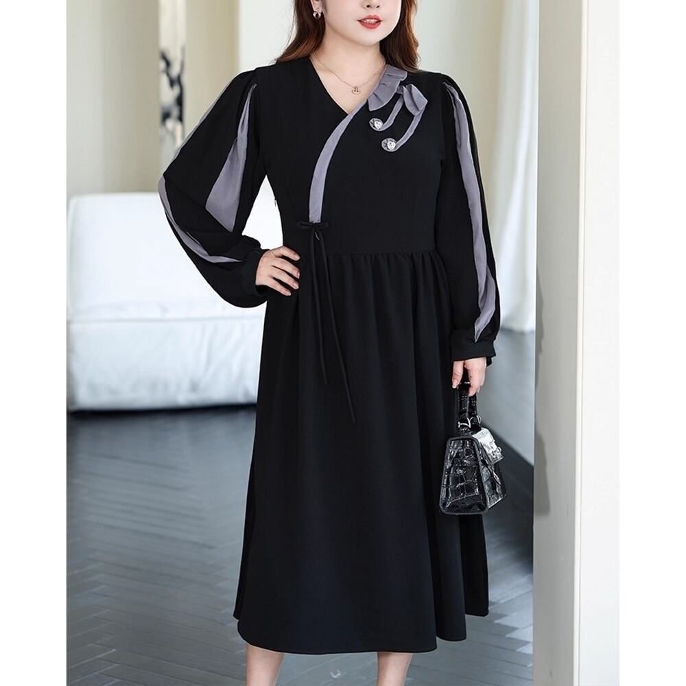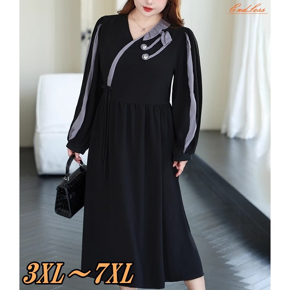 【 送料無料 】 長袖 ミドル丈 ゆったり ルーズ ブラック ドレス ワンピース 秋服 レディース 大きいサイズの店 大きいサイズ 安い 服 重ね着 きれいめ リゾート ロング コーデ ママ 10l 9l 8l 7l 6l 5l 4l 3l M1862