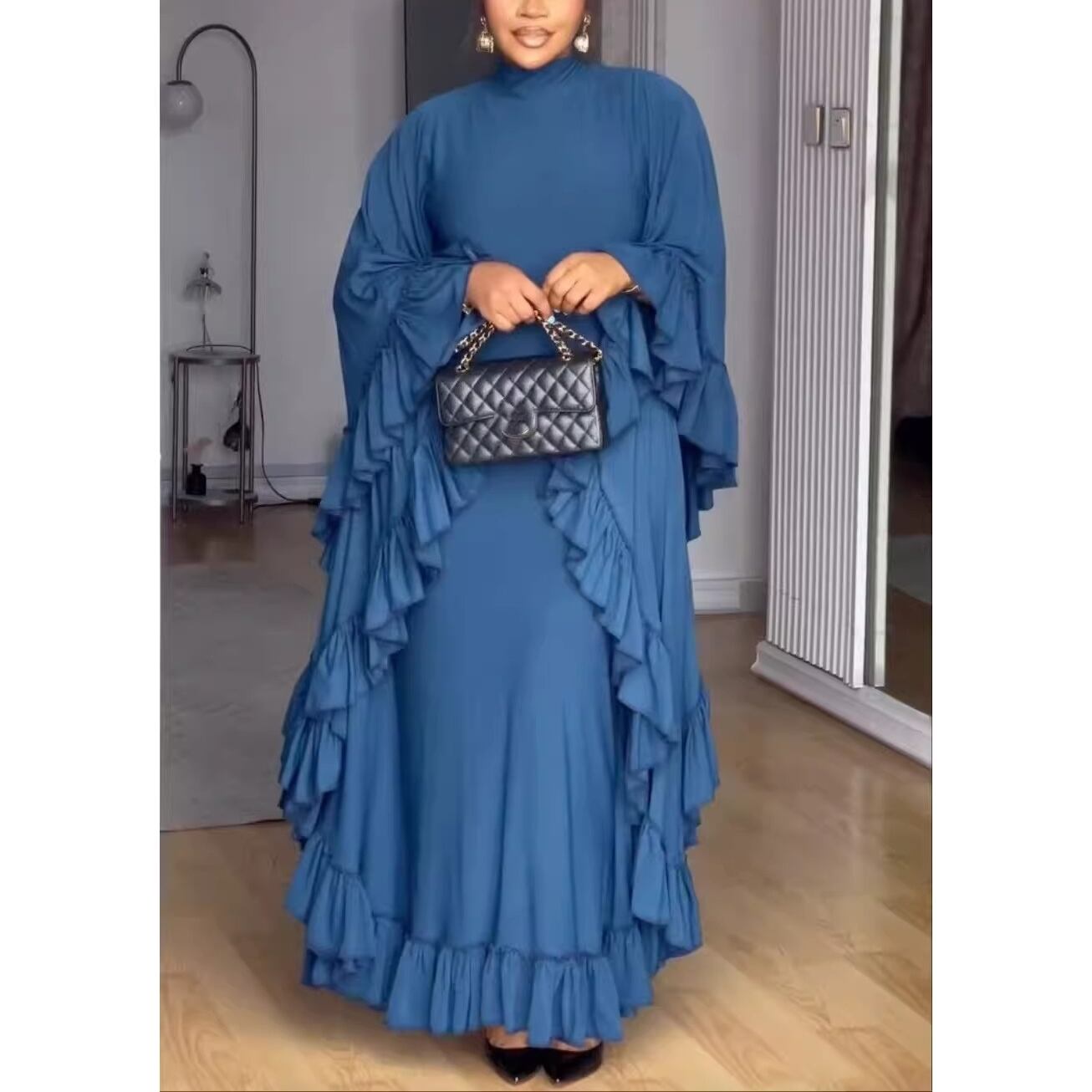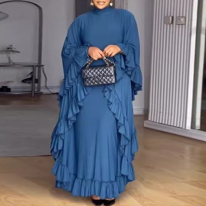 【 送料無料 】 フリル トリム ハイネック ウイング スリーブ ドレスレディース 大きいサイズの店 大きいサイズ 安い 服 重ね着 きれいめ リゾート ロング コーデ ママ 10l 9l 8l 7l 6l 5l 4l 3l M1869