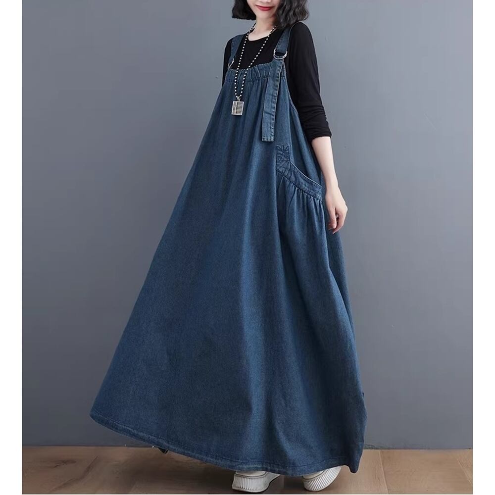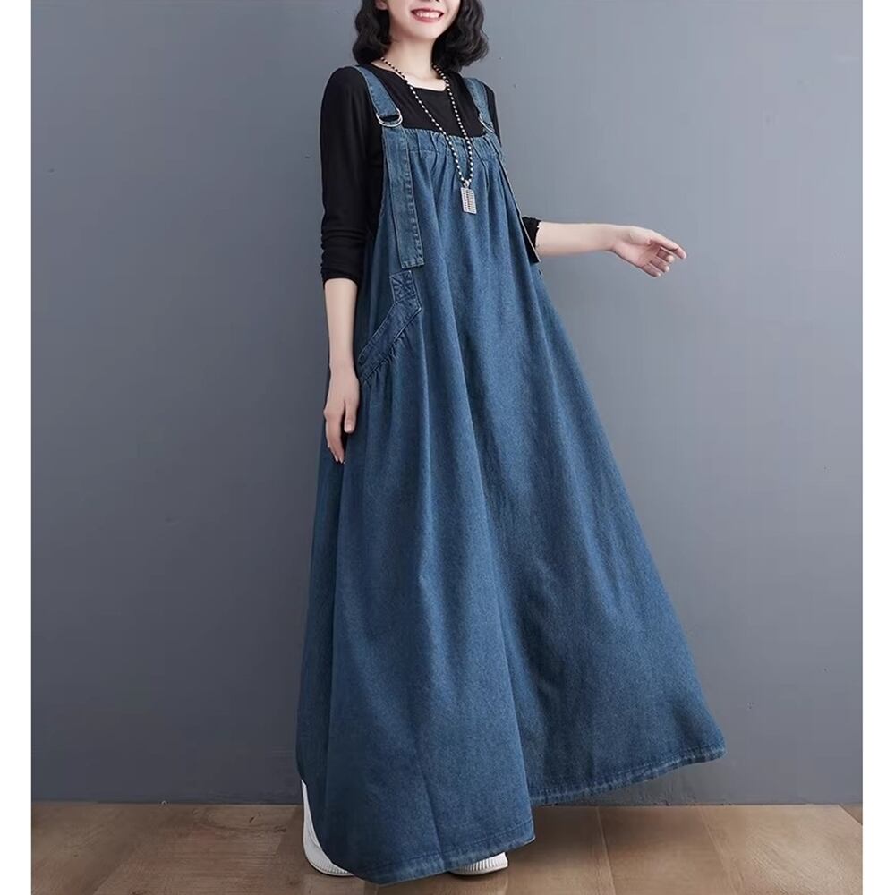 【 送料無料 】 プラスサイズ デニム オーバーオール ルーズ ドレス ワンピース 服 レディース 激安 スカート ロングスカート 着痩せ 10l 9l 8l 7l 6l 5l 4l 3l M1870