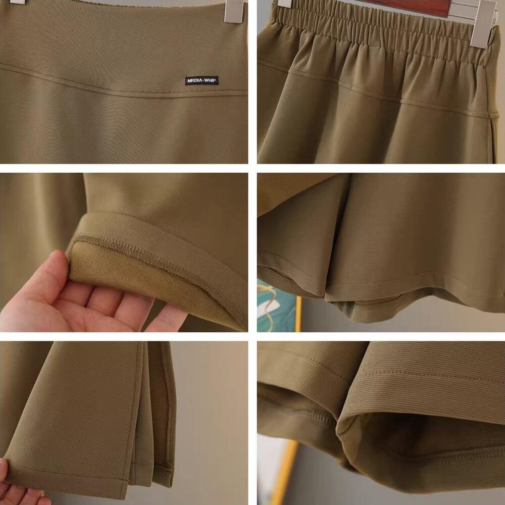 スタイルを引き立てる、プラスサイズのハイウエストショートスカートパンツです。