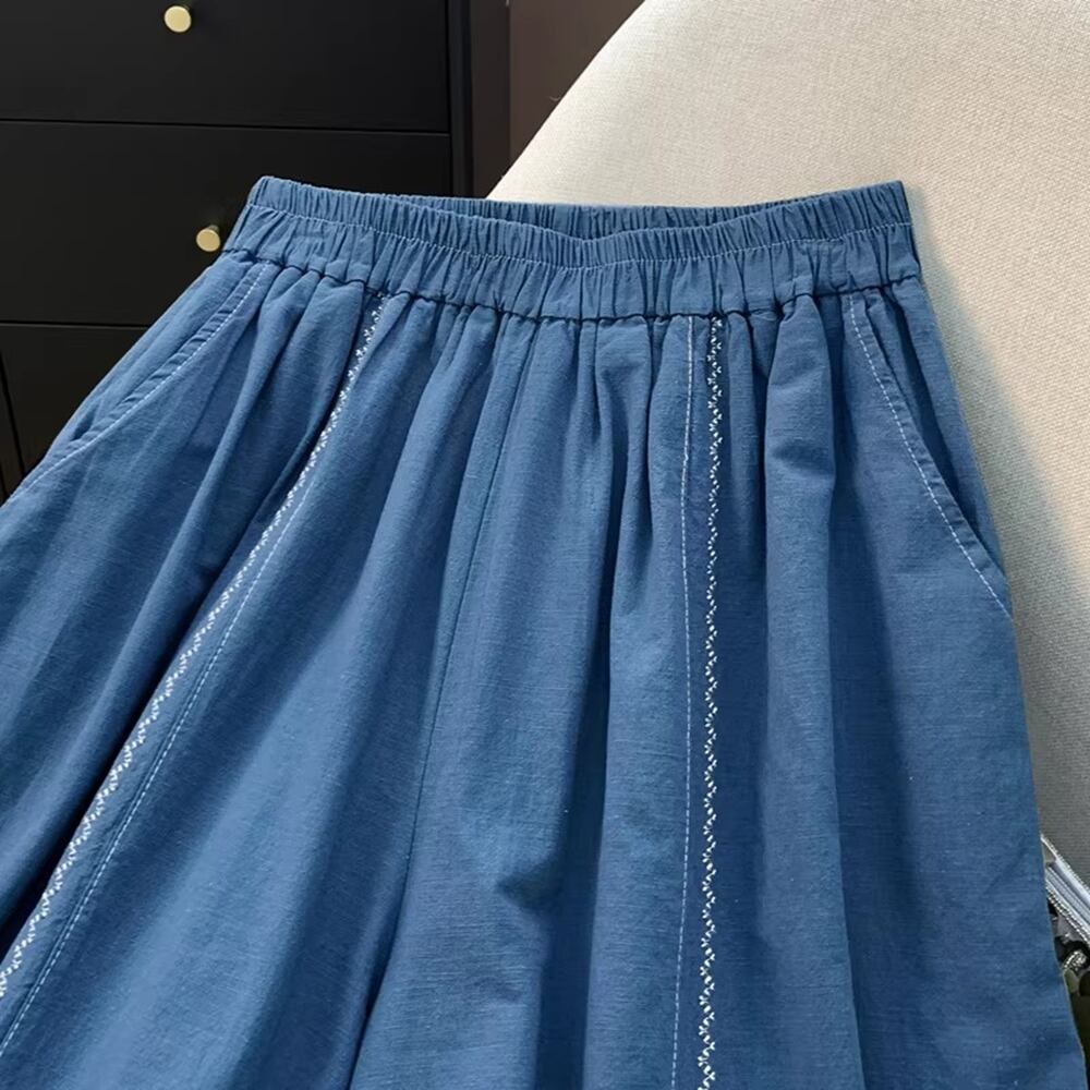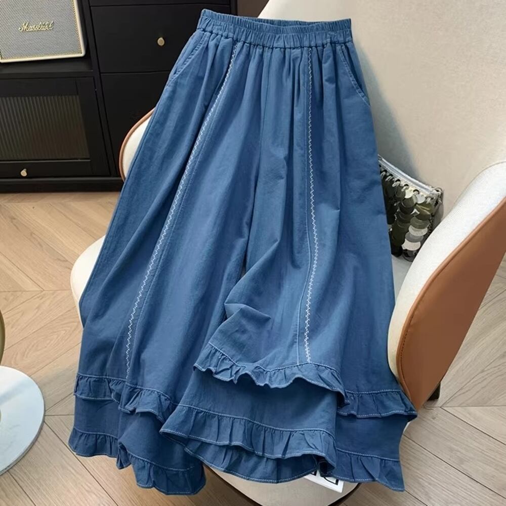 【 送料無料 】 ゆったり プラスサイズ ワイド レッグ パンツ フリル刺繍 レトロ 春 夏 レディース 大きいサイズ ワンピース 服 激安 ロングスカート 着痩せ 10l 9l 8l 7l 6l 5l 4l 3l M1881