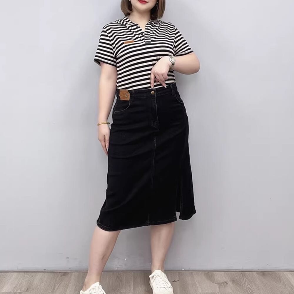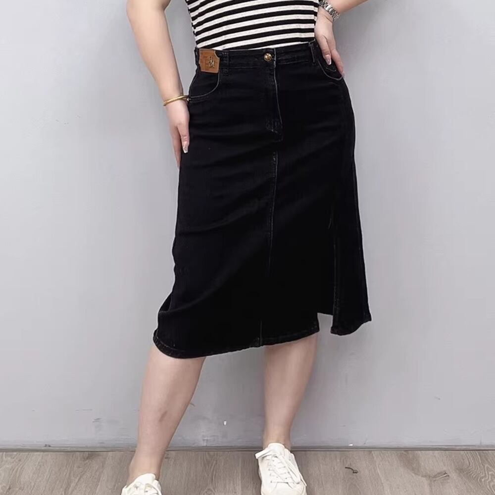 【 送料無料 】 プラスサイズ ハイウエスト デニム ミディ スカート ゆったり スリット フィット 春 夏 黒レディース 大きいサイズ ワンピース 服 激安 ロングスカート 着痩せ 10l 9l 8l 7l 6l 5l 4l 3l M1884