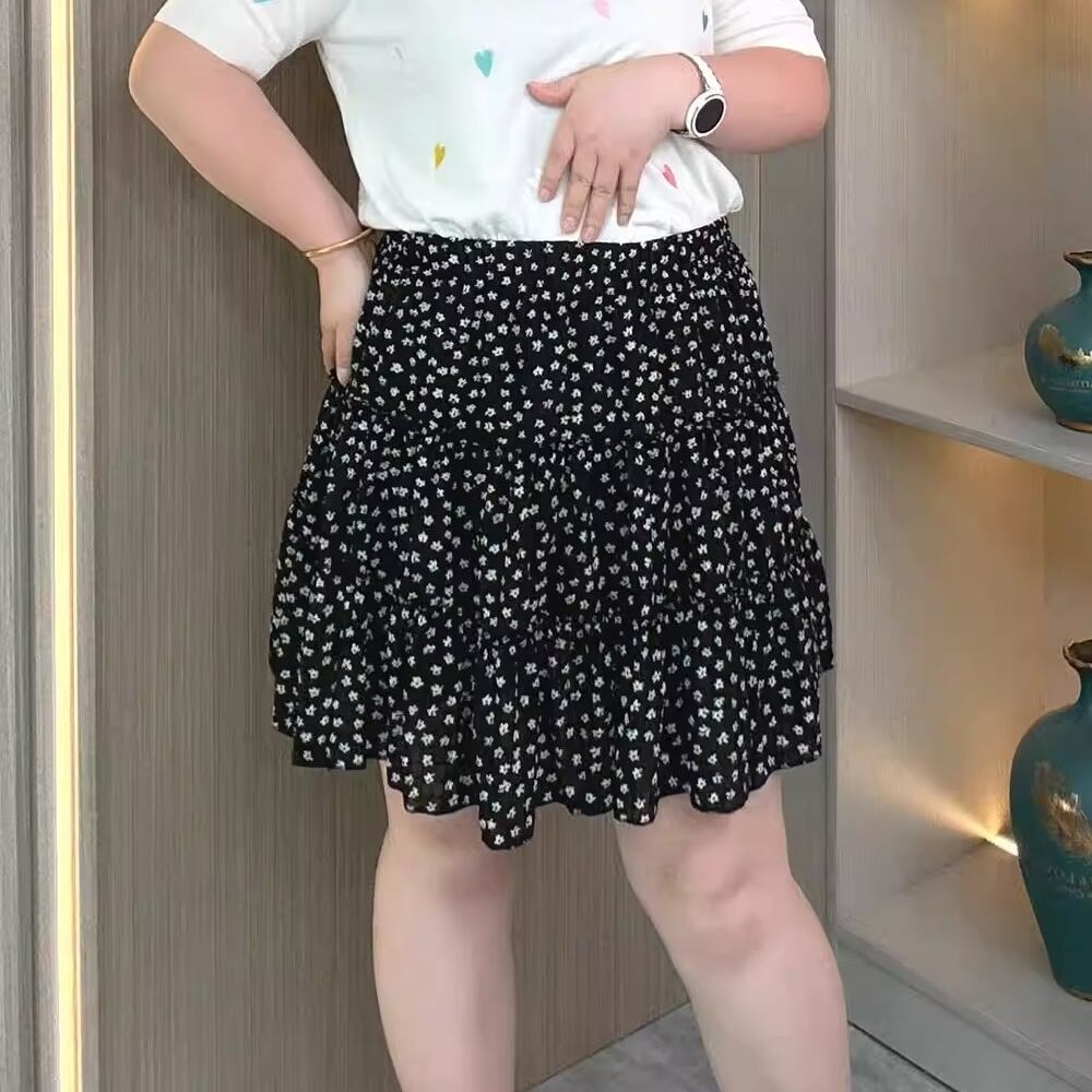 【 送料無料 】 花柄 ケーキ スカート ハイウエスト プラスサイズ ウエストカバー 黒 夏 レディース 大きいサイズ ワンピース 服 激安 ロングスカート 着痩せ 10l 9l 8l 7l 6l 5l 4l 3l M1889