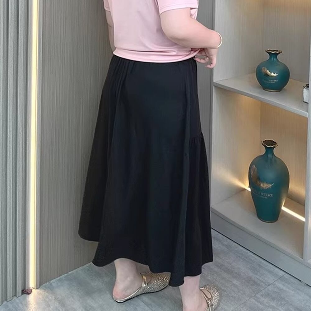 【 送料無料 】 ブラック ミディ スカート 春 夏 アンブレラ スカートプラスサイズ レディース 大きいサイズ ワンピース 服 激安 ロングスカート 着痩せ 10l 9l 8l 7l 6l 5l 4l 3l M1891