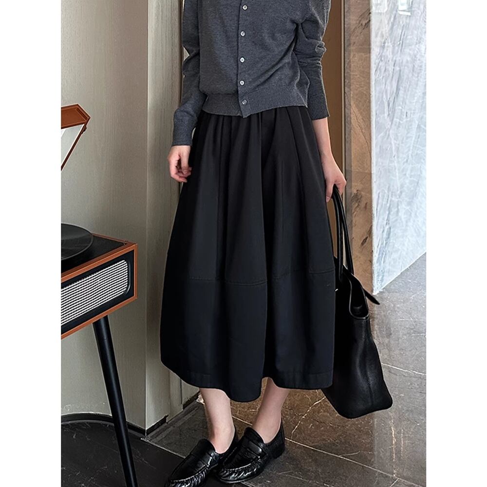 ◆春の新しいコーディネートにぴったりな、ブラックチューリップミディスカートが登場しました!このスカートは、ゆったりとしたルーズなデザインで、リラックスした履き心地を実現。ウエストは伸縮タイプになっており、誰にでもフィットしやすい仕様です。