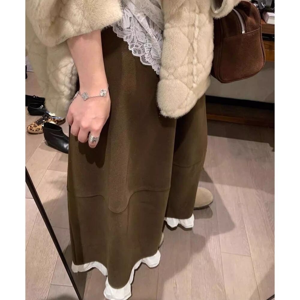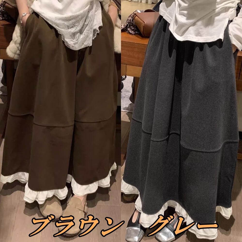◆春秋のスタイルにぴったりな、プラスサイズのゆったりフリルスカートが新登場しました!このロングスカートは、エレガントなフリルデザインが特徴で、リラックスした着心地と同時に、スマートなシルエットを実現します。