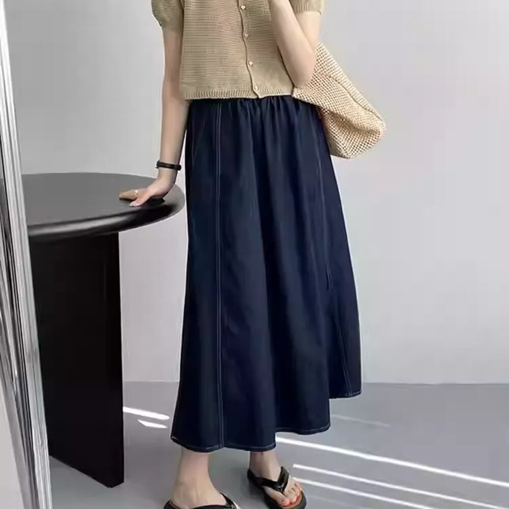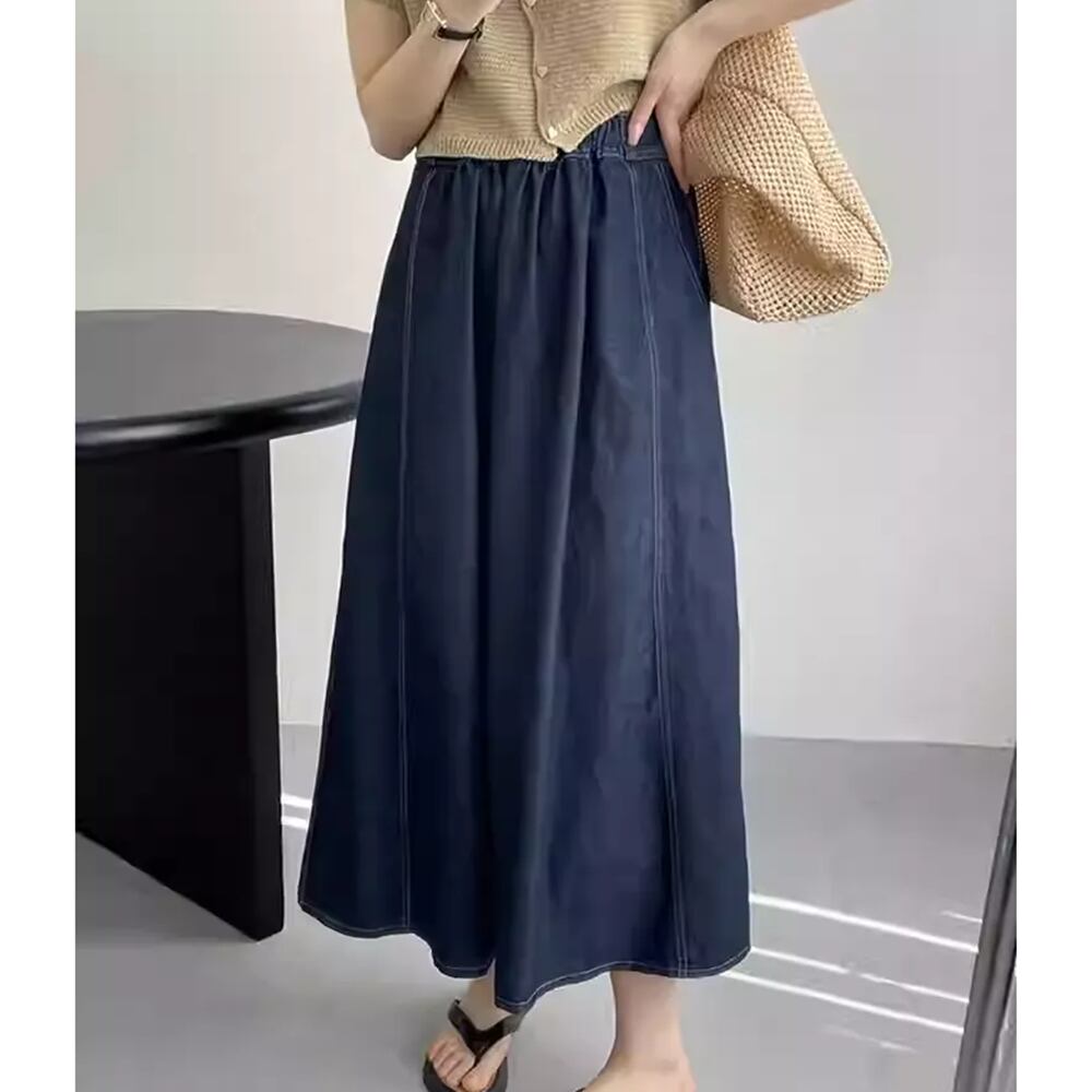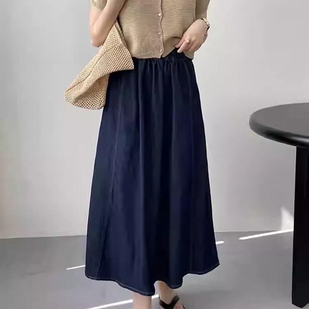 ◆春秋にぴったりのミドル丈デニムAラインスカートが登場しました!リラックスしたシルエットが魅力のこのスカートは、着痩せ効果があり、大きいサイズにも対応しています。