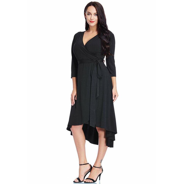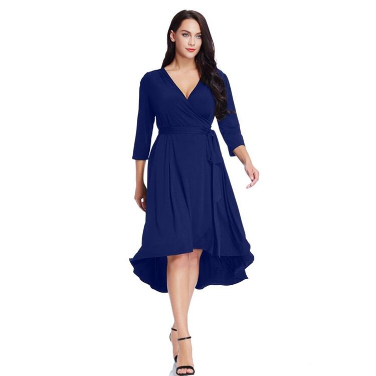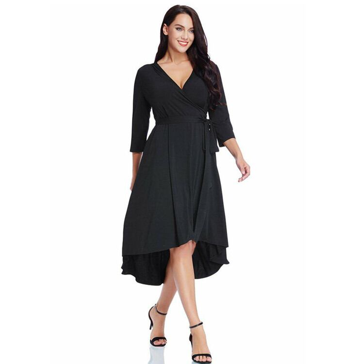 ○ プラスサイズ ハイウエスト Vネック セクシー ドレス ○