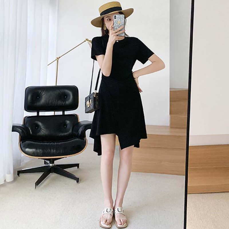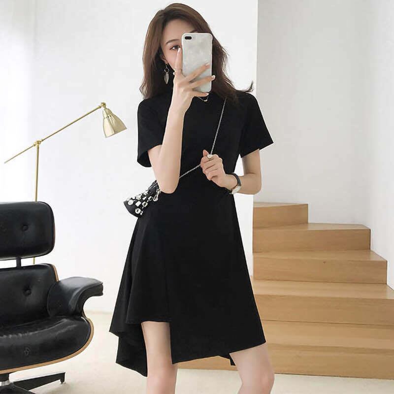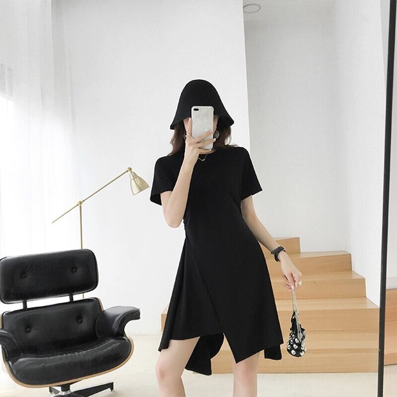 ☆ シンプル ブラック ワンピース シャツ 不規則 スカート ☆