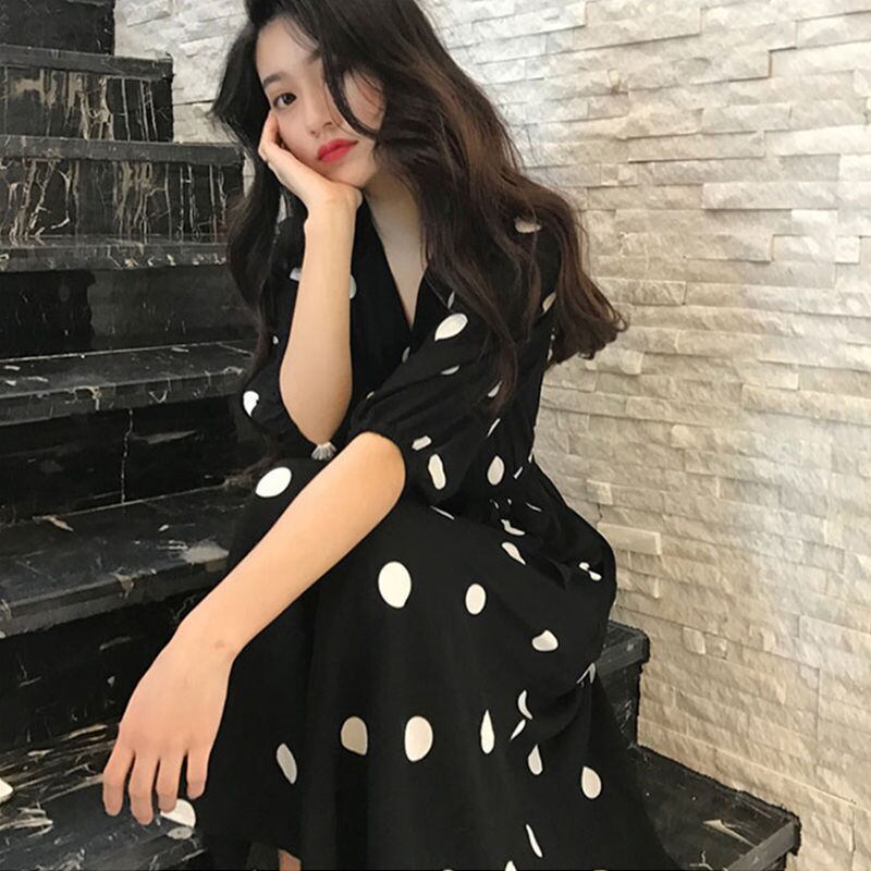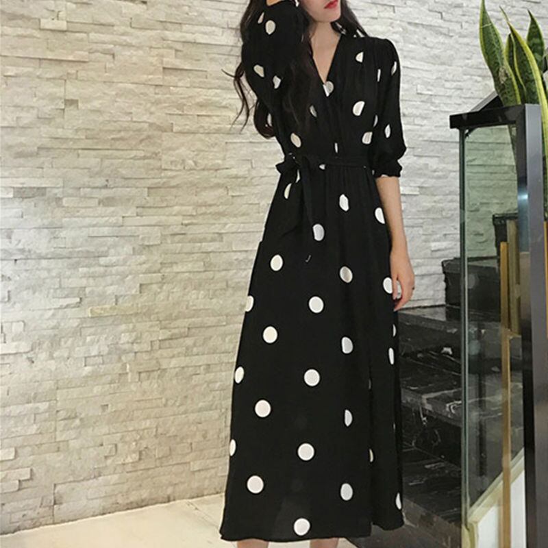 【 M 〜 4XL 】 大きいサイズ レディース Vネック 水玉 ワンピース ロング 209