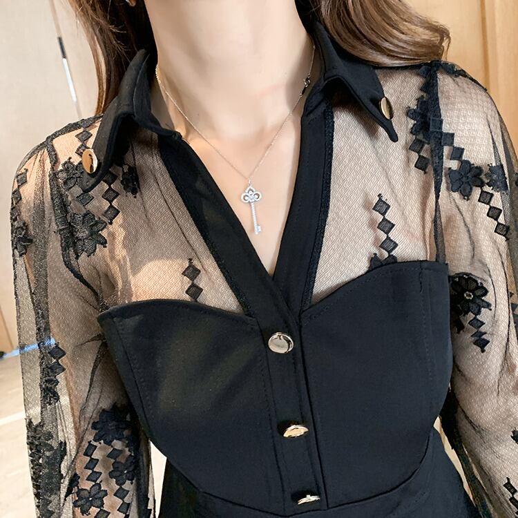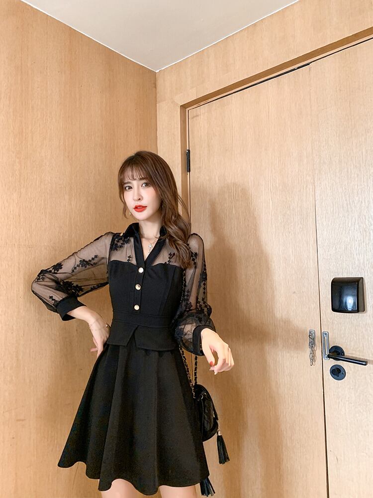 【 XL 〜 5XL 】 大きいサイズ レディース Vネック セクシー レース ステッチ ドレス レトロ 4XL 3XL 2XL 70729