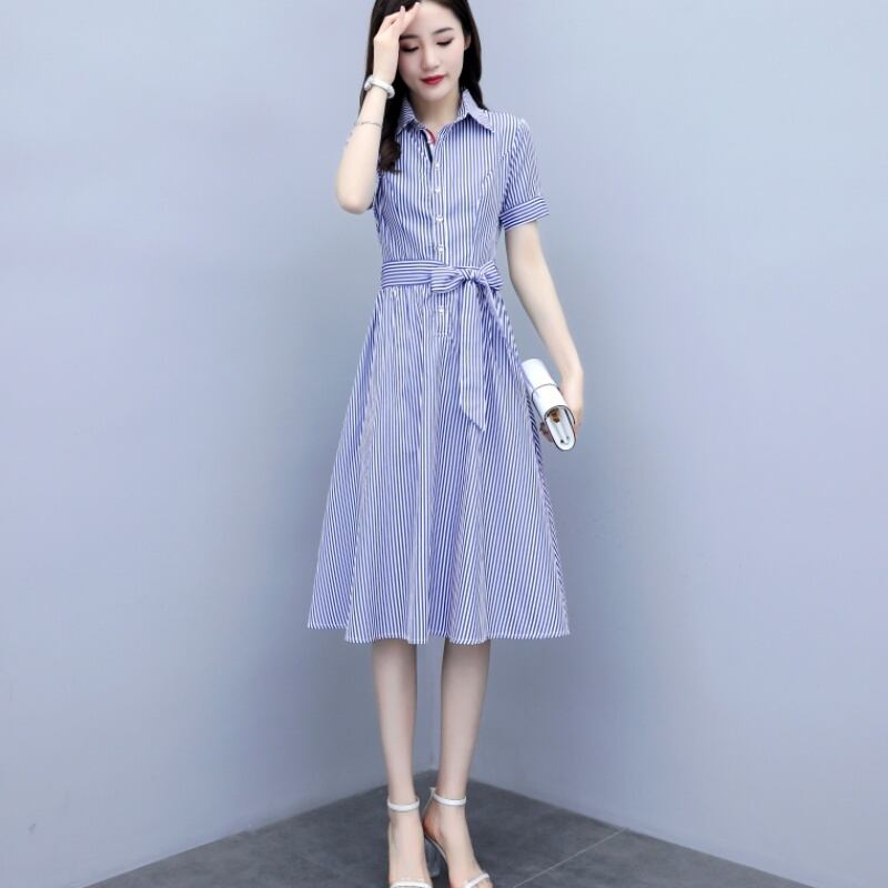 【 S 〜 3XL 】 大きいサイズ レディース ストライプ 夏 ドレス シャツワンピース 3xl 2xl 70509