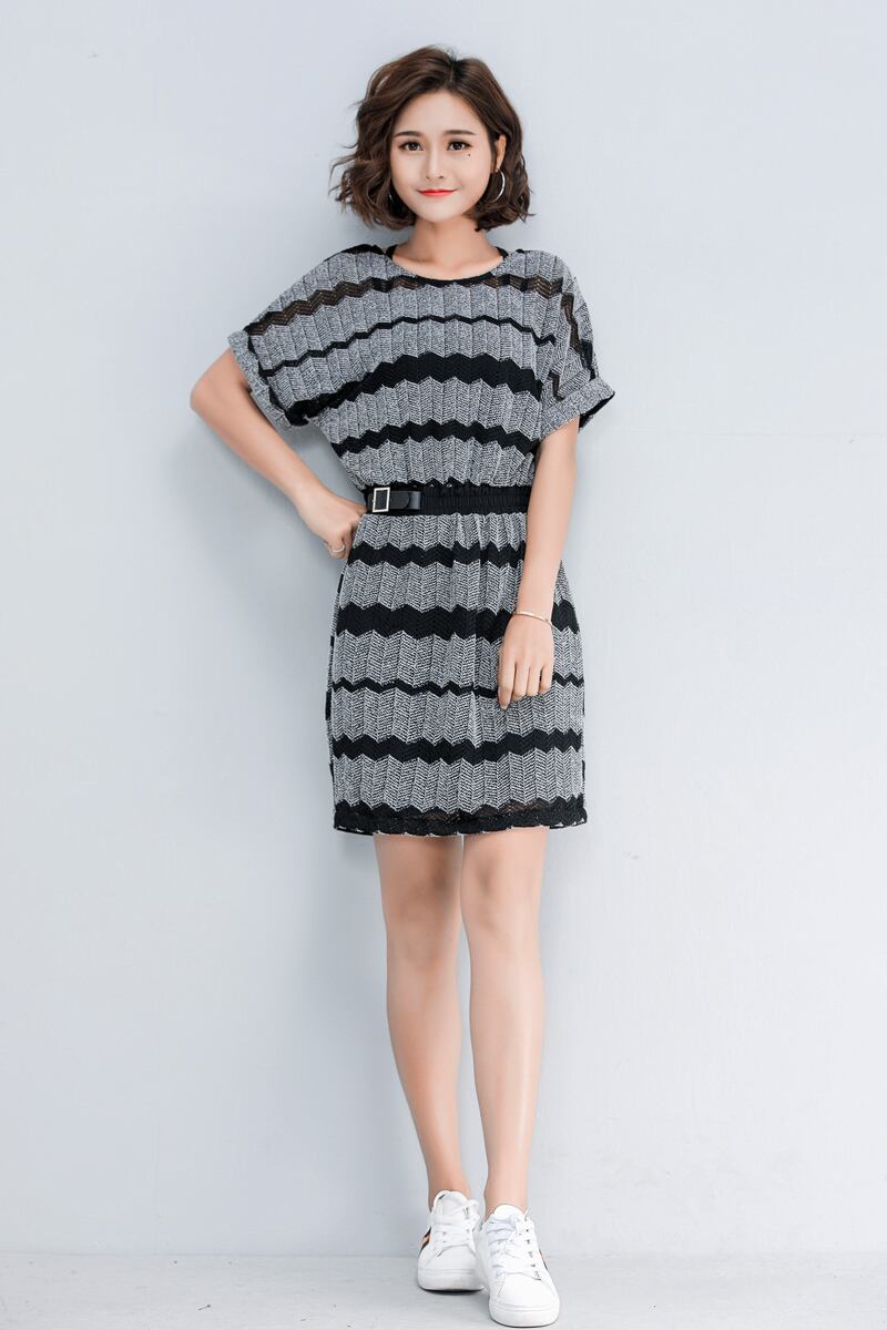 ☆ プラスサイズ 春 夏 ファッションストライプ スリム ウエスト ニット ドレス ☆