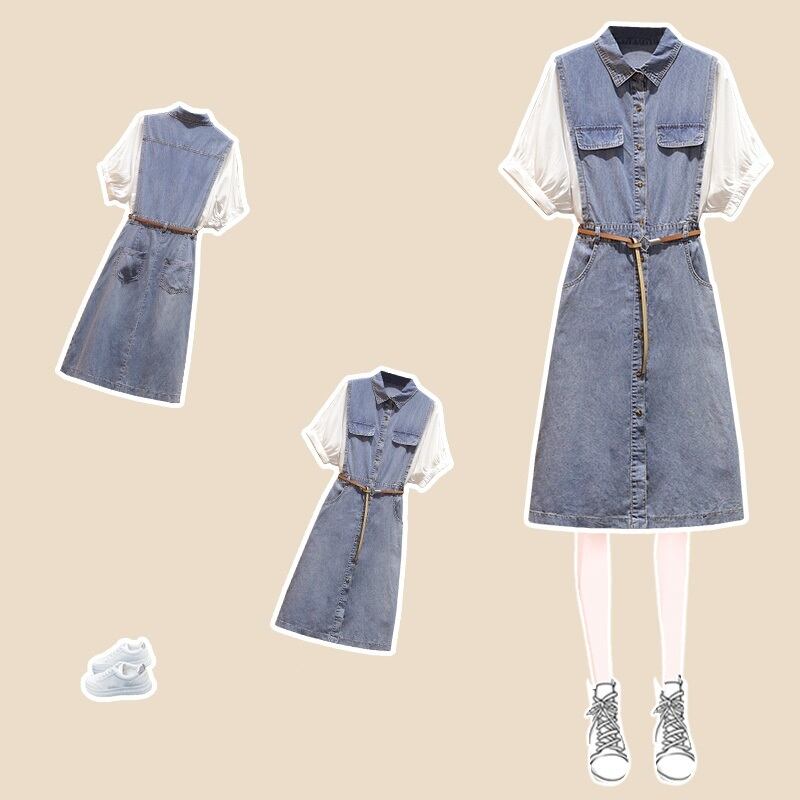 【 XL 〜 5XL 】 大きいサイズ レディース フェイク デニム スカート ワンピース 夏 ドレス 5L 4XL 4L 3XL 3L 2XL 70821