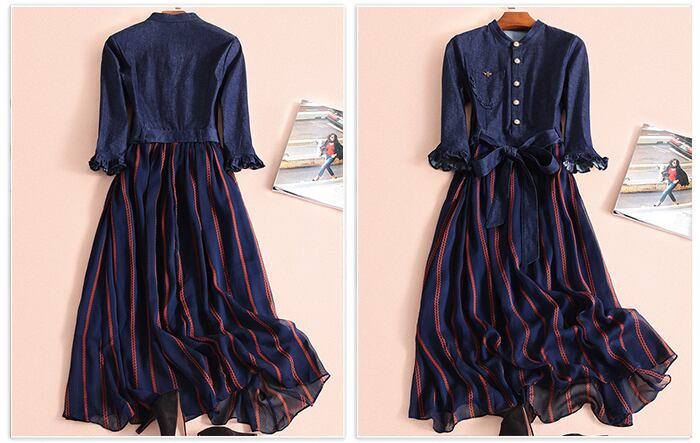 【XL〜5XL】 大きいサイズ レディース 春 夏 デニム ドレス レトロ 体型カバー 七分袖 エレガント スタイル 5L 4XL 3XL 3L 2XL 2L 70478