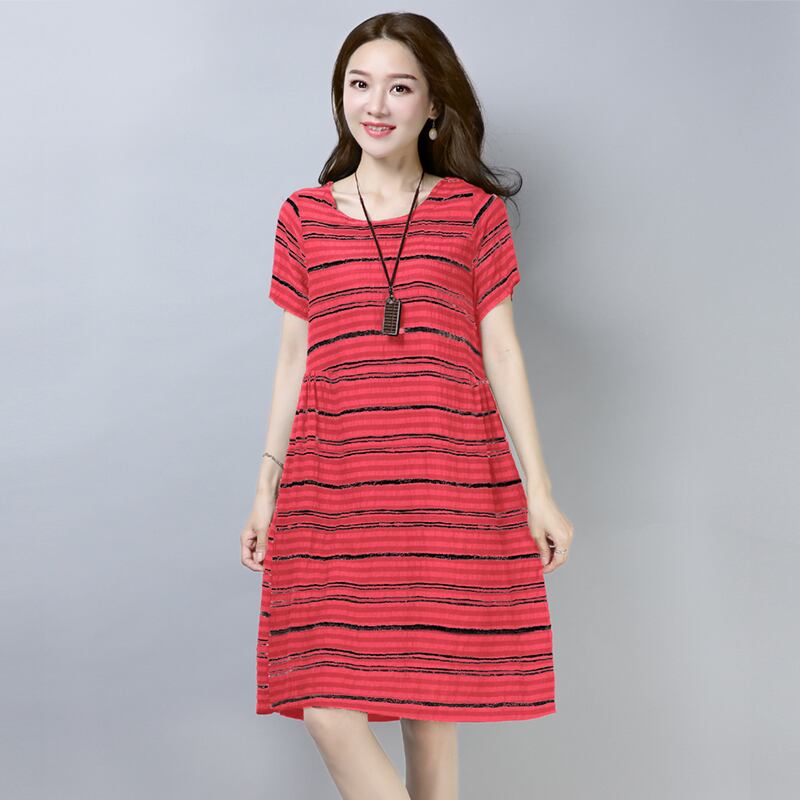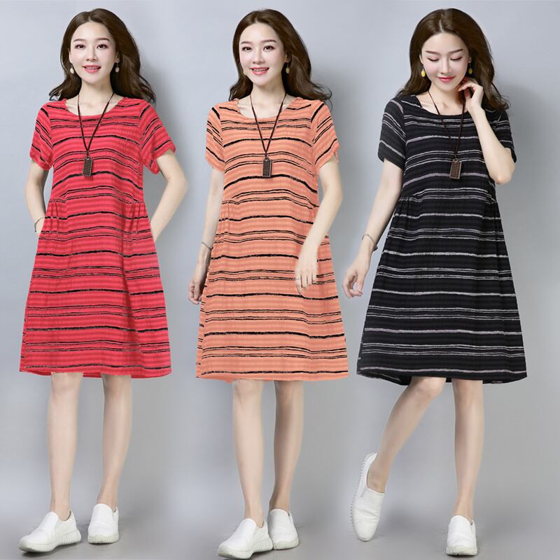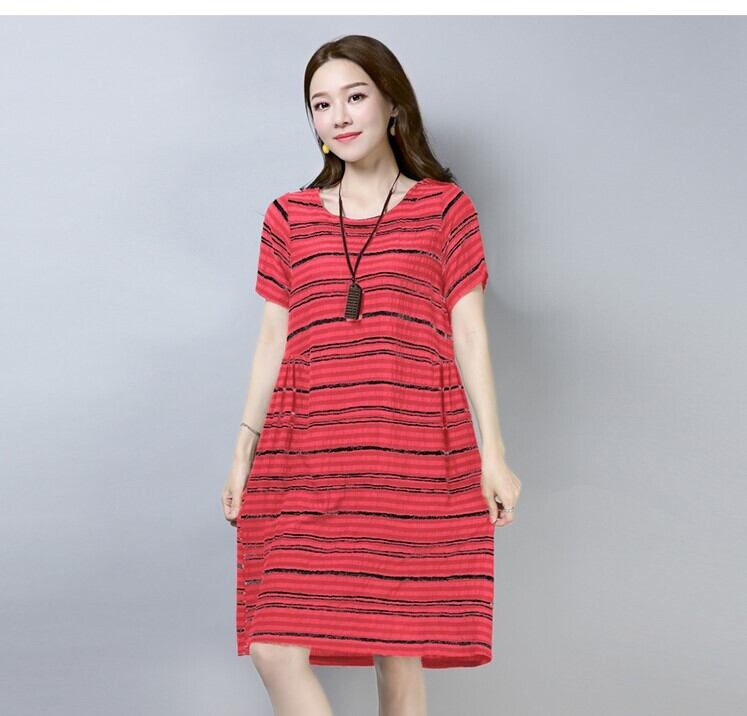 ☆ ビッグサイズ コットン ワンピース レトロ ストライプ 半袖 ☆