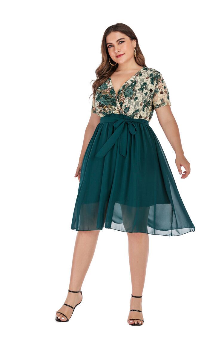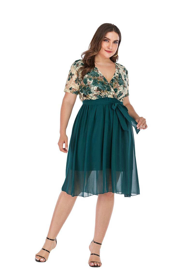 ☆ ビッグ サイズ 夏 レディース 半袖 イブニング ドレス ☆