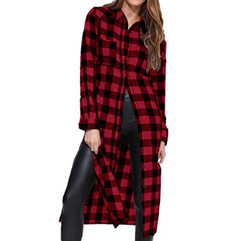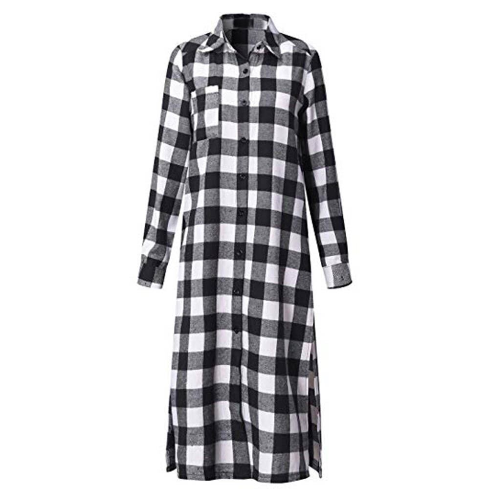 【 S 〜 XL 】 大きいサイズ レディース クロス ボーダー ロング クラッシック チェック柄 ボタン シャツ トップス 長袖 70782