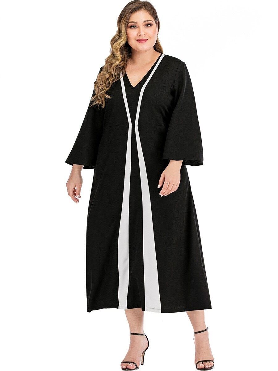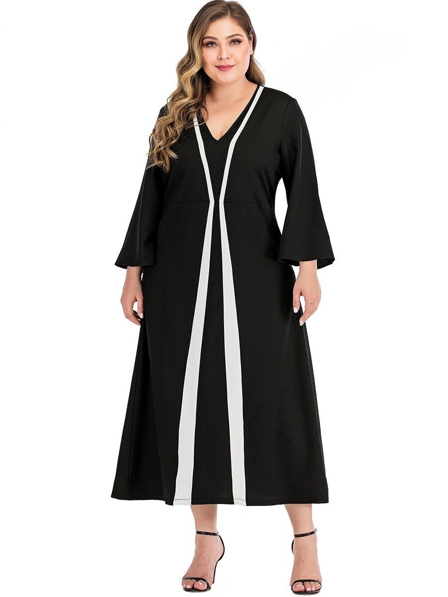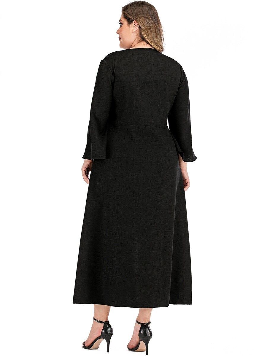 【 L 〜 4XL 】 大きいサイズ レディース 女性服 長袖 ロング ドレス Vネック トランペット スリーブ ライン 3XL 2XL 70747