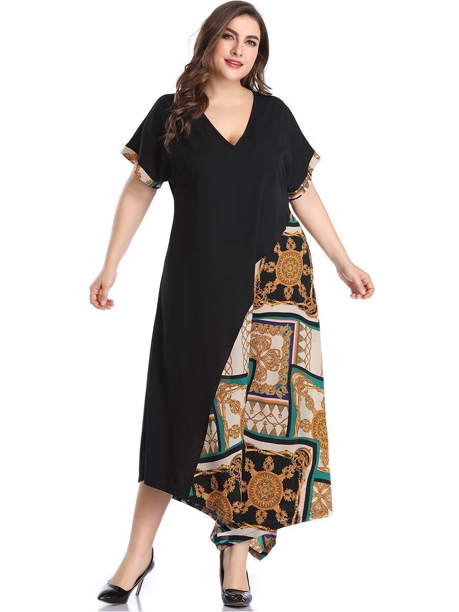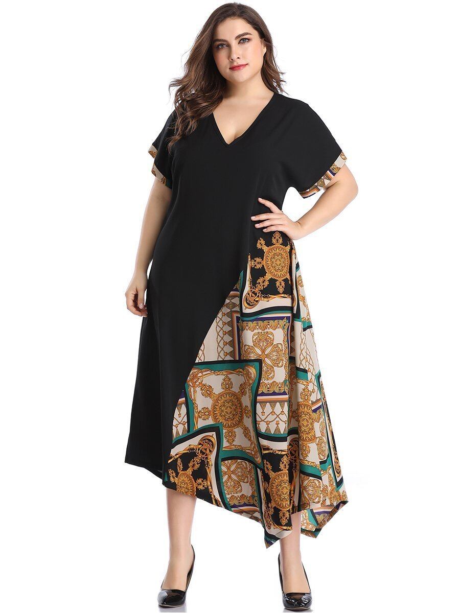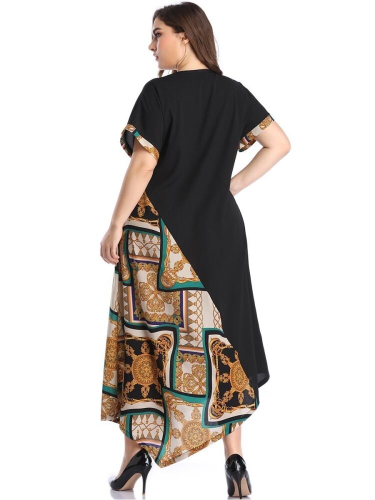 【 L 〜 4XL 】 大きいサイズ レディース 女性服 パーティー カジュアル ドレス ステッチ プリント 半袖 4l 4xl 70753
