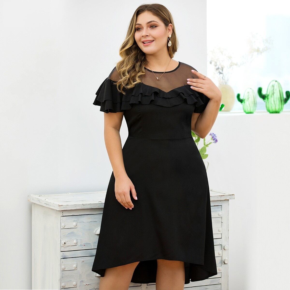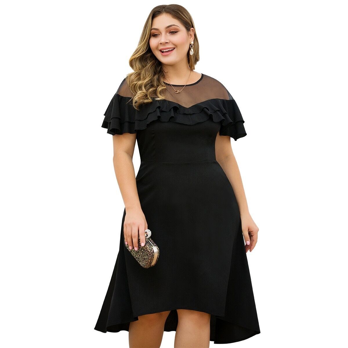 【 XL 〜 4XL 】 大きいサイズ レディース 女性服 エレガント レース パーティー ドレス フリル 4xl 4l 3l 70756
