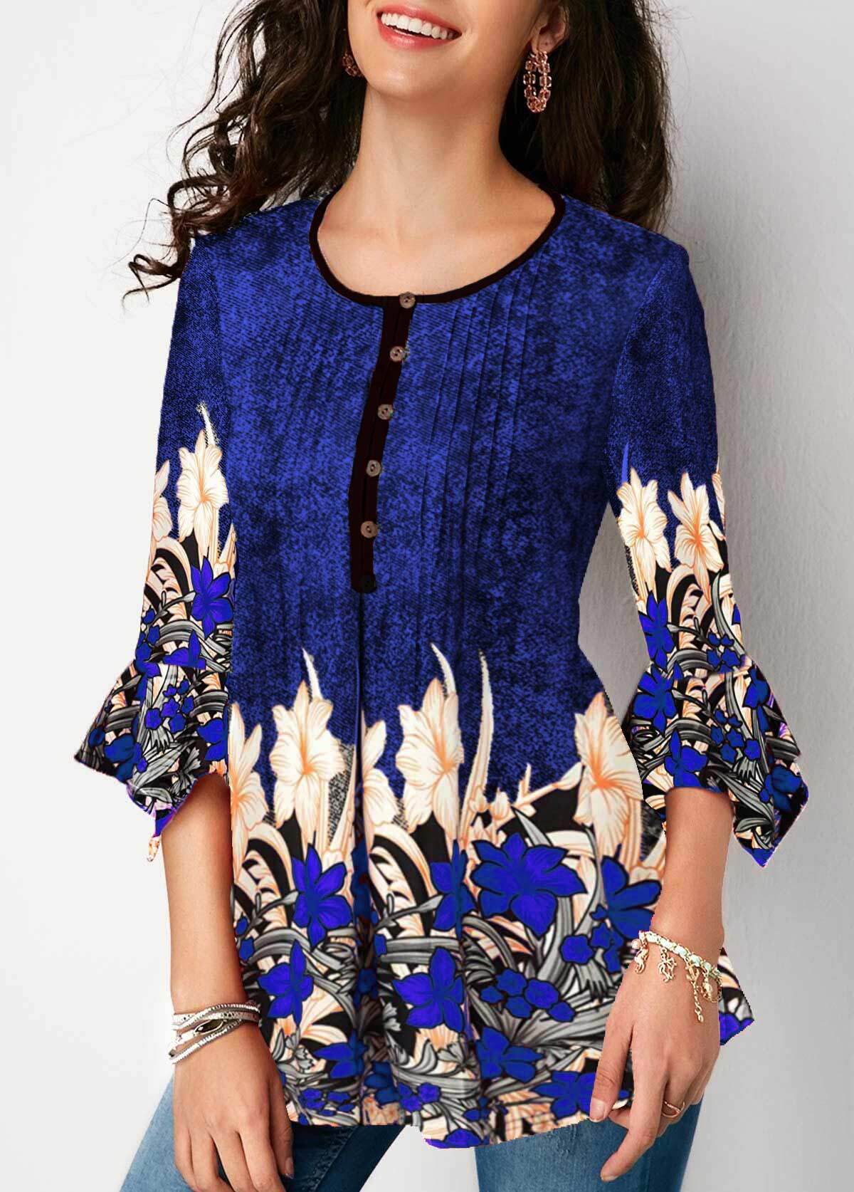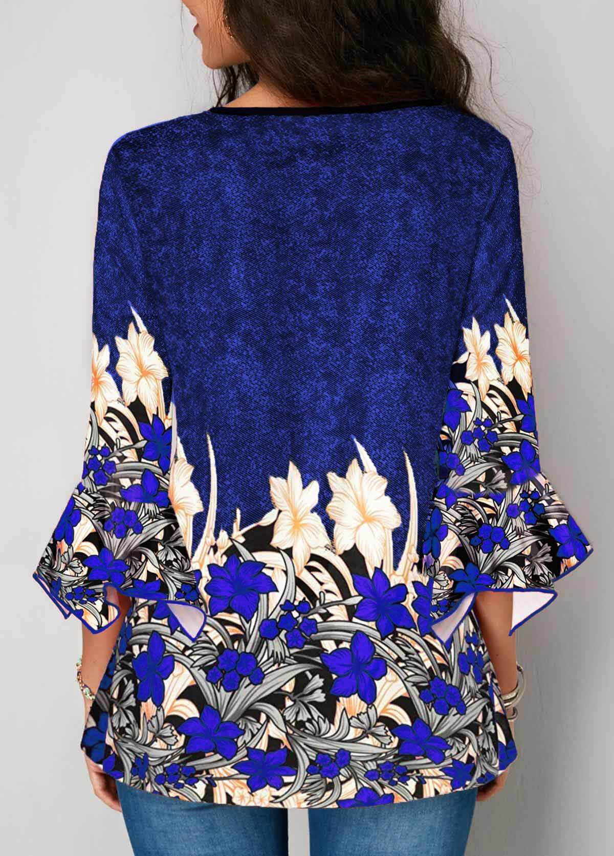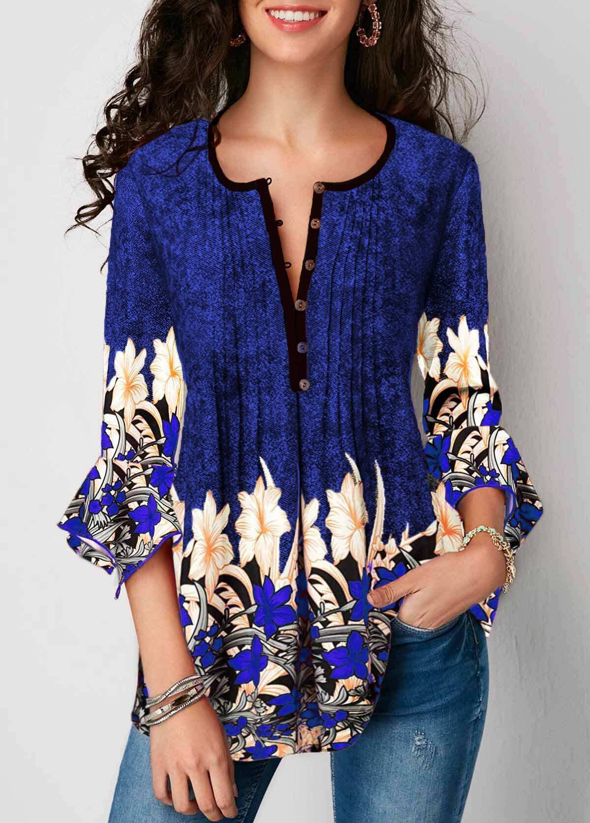 ○ プラスサイズ レディース 七分袖 プリント 花柄 シャツ ブラウス ○