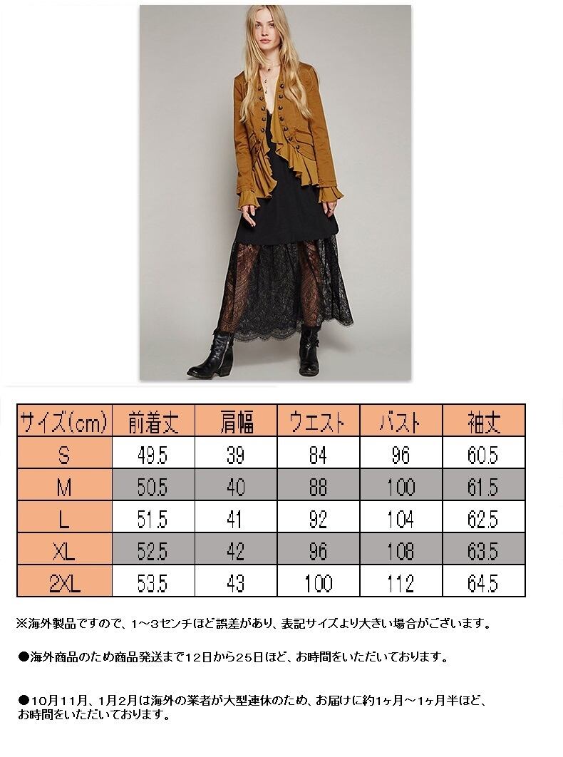 S: 前着丈50 肩幅 39 ウエスト 84 バスト 96 袖丈 61