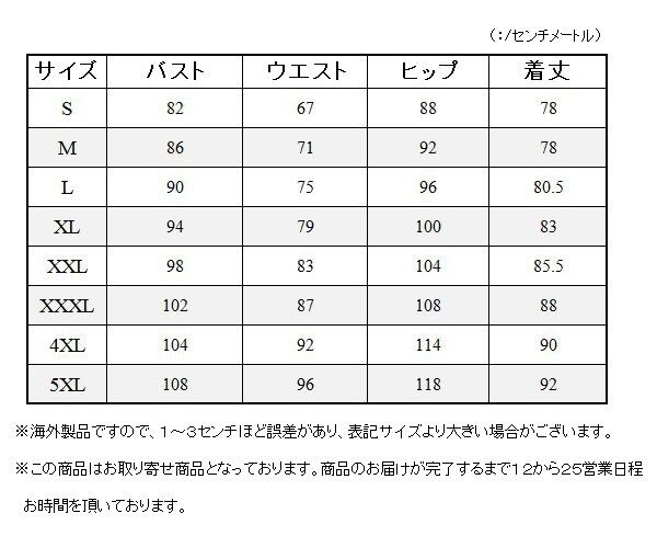 5XL: バスト108 ウエスト 96 ヒップ118 着丈 92