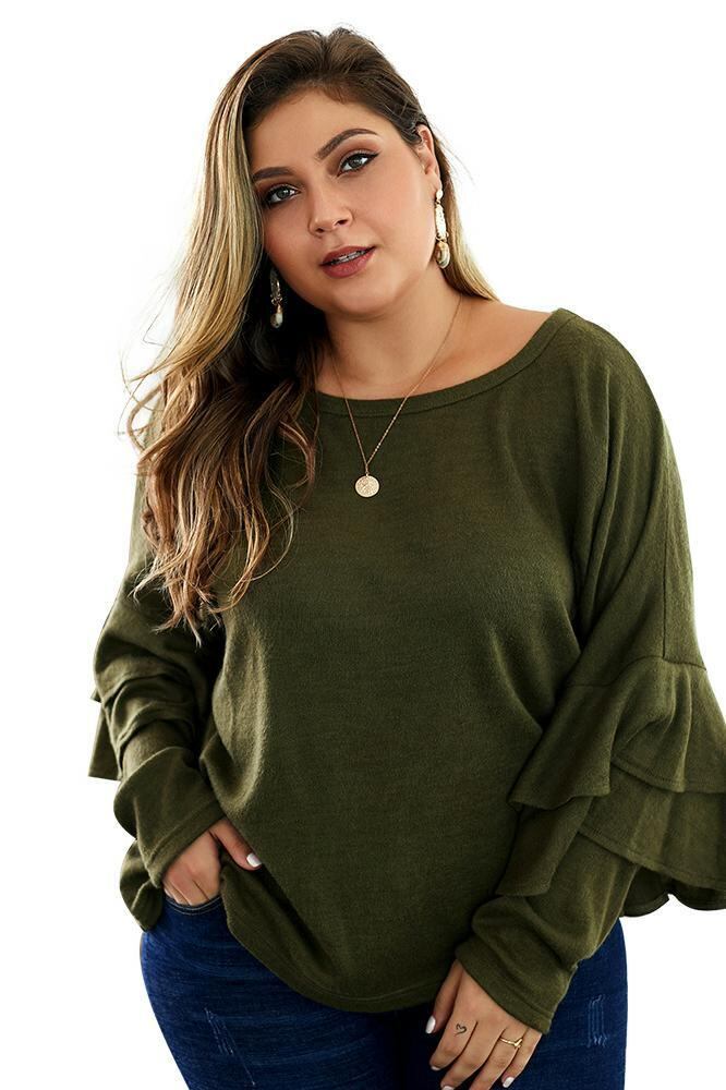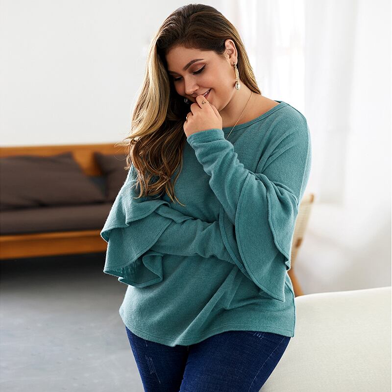 【 XL 〜 4XL 】 大きいサイズ レディース プラスサイズ セーター トップス 長袖 フリル 3XL 2XL 70731