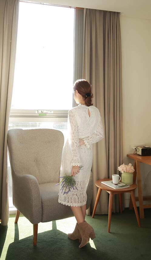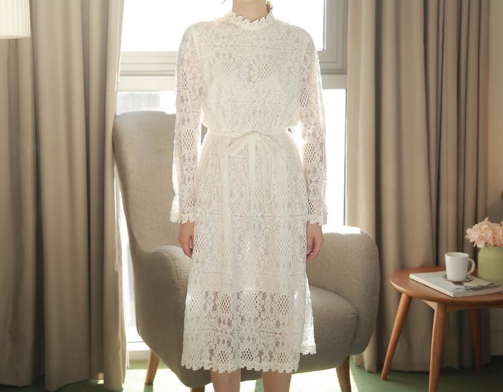 【 S 〜 2XL 】 大きいサイズ レディース ロング レース スリム ドレス 長袖 スイング スカート XL L 70736